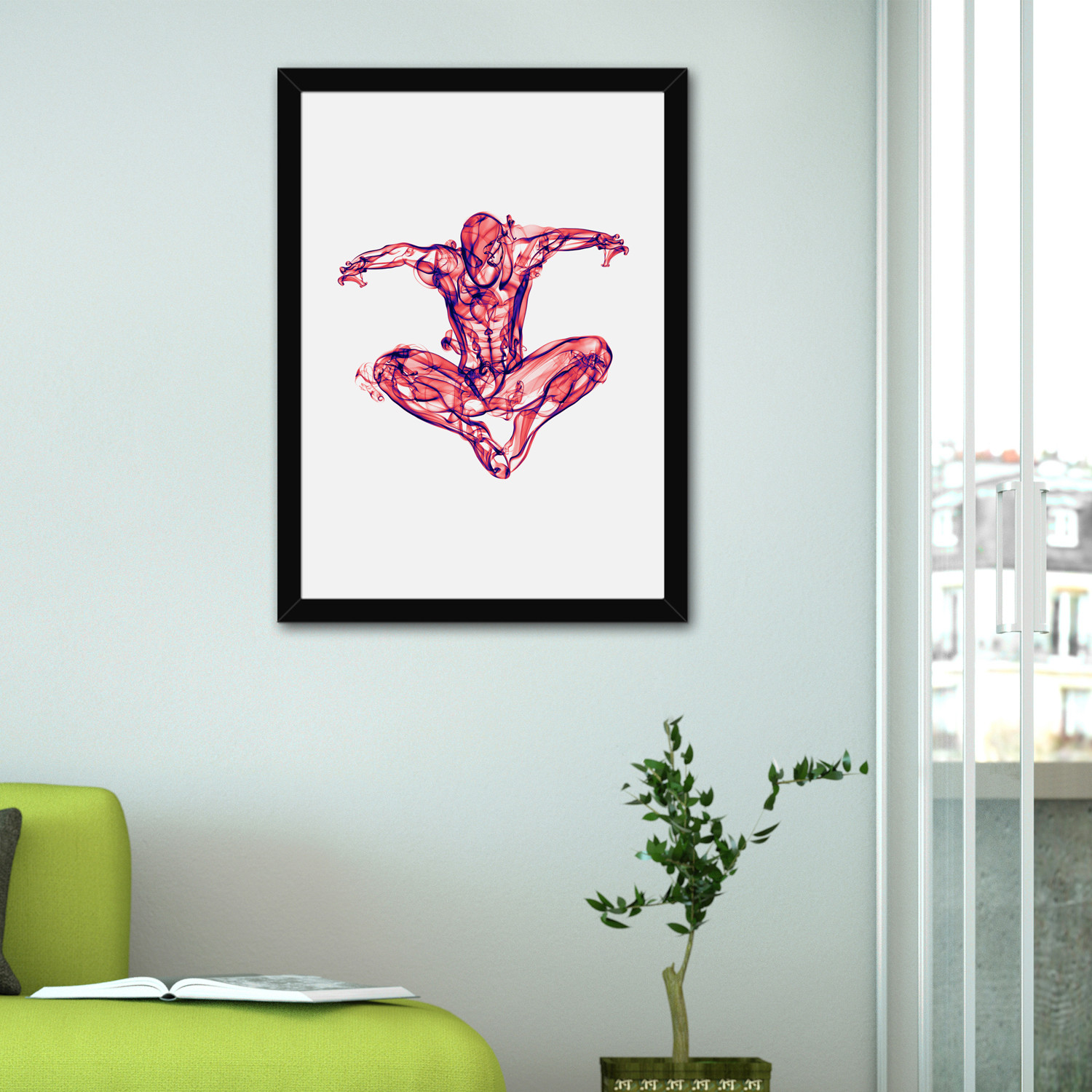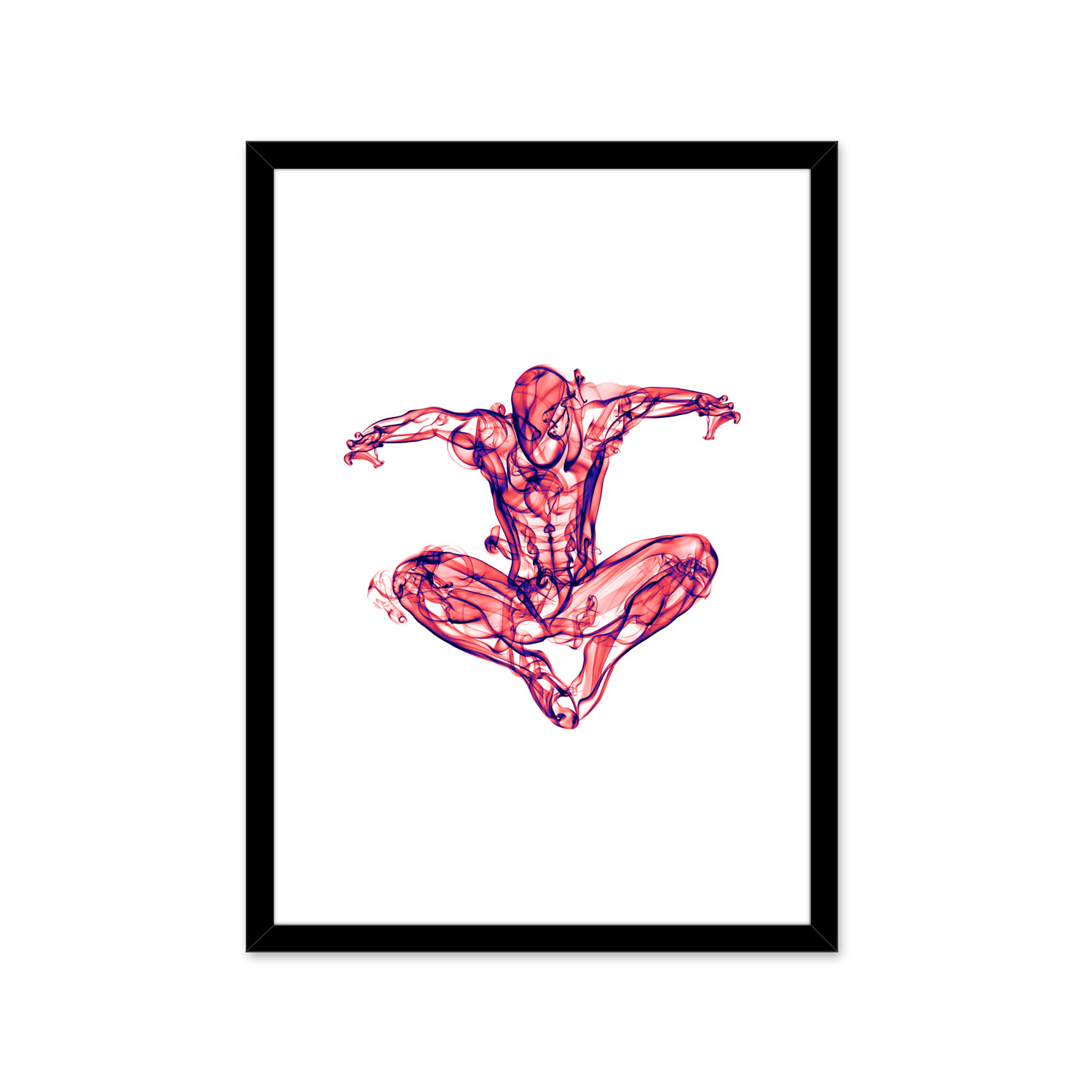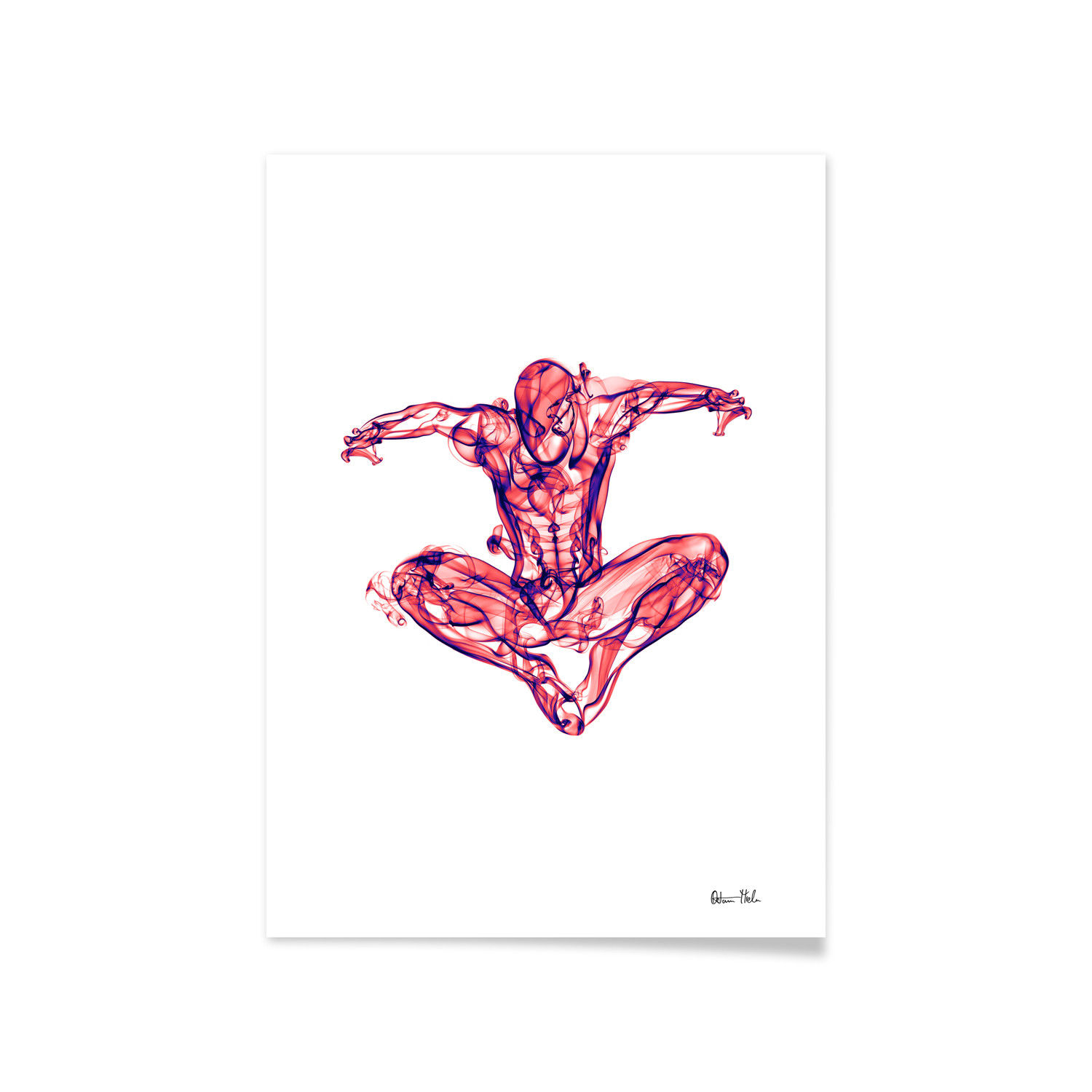 With a shape emerging from wisps of smoke, Spiderman is a unique portrait with a frame included. Signed by the artist himself, this print is the perfect way to celebrate your favorite superhero's story.