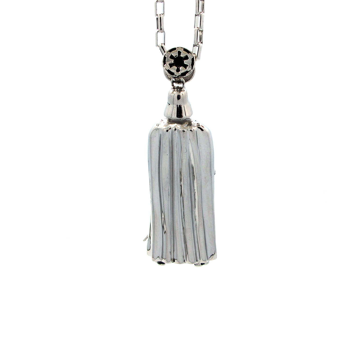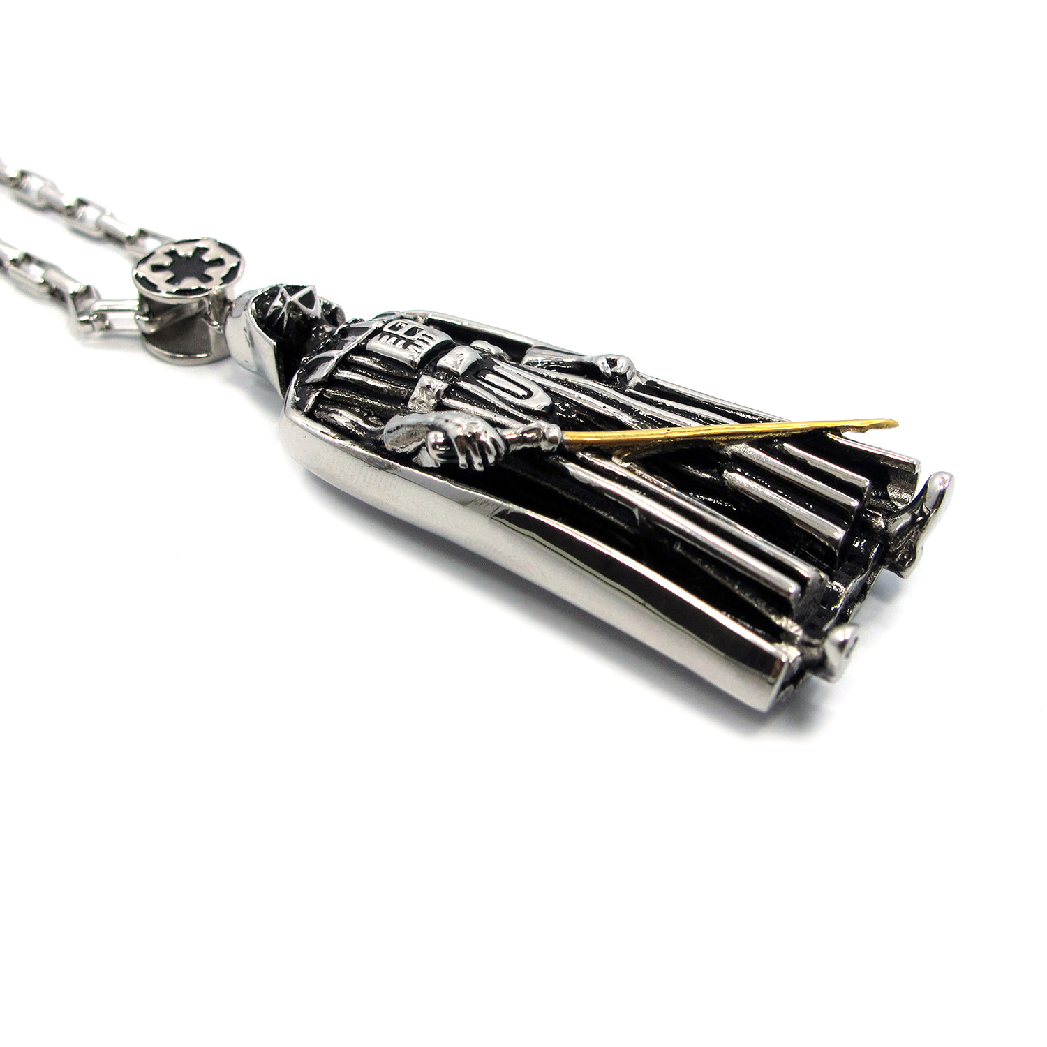 This is the pendant you're looking for. Show off your nerd side with this fully-licensed ring featuring the infamous Darth Vader. In stainless steel with cut out detail, this piece will bring balance to your collection of jewelry, or movie merch.
