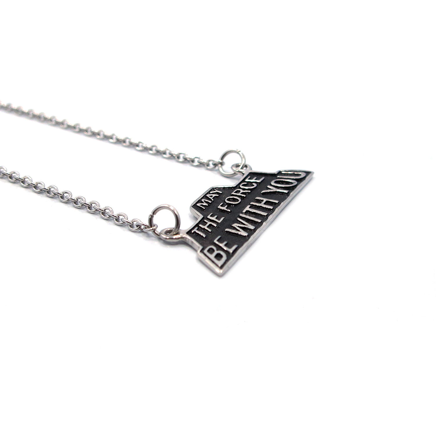 This is the pendant you're looking for. Show off your nerd side with this fully-licensed ring featuring the intergalactic adage 'May the force be with you'. In stainless steel with cut out detail, this piece will bring balance to your collection of jewelry, or movie merch.