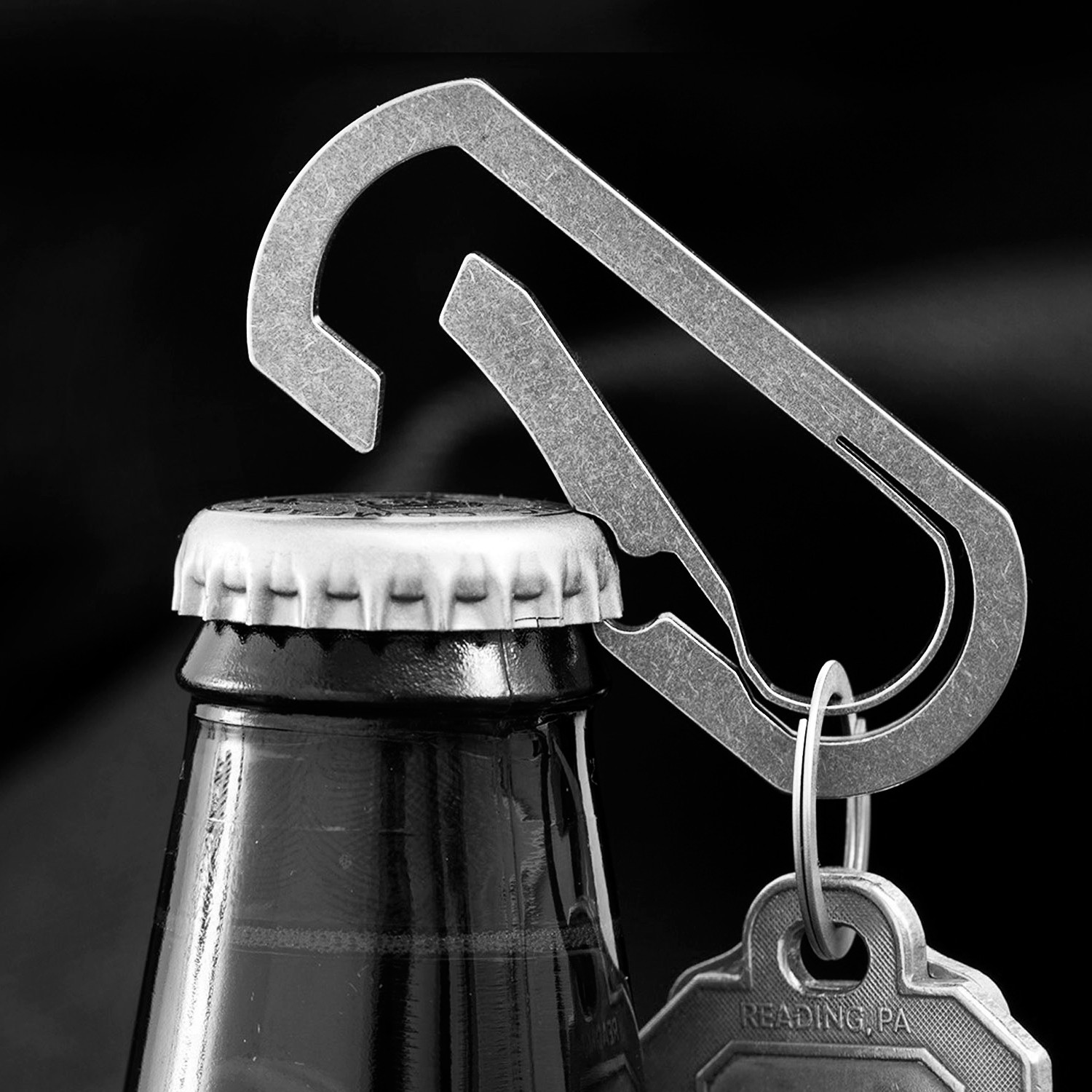 The Bauhaus K11 is a carabiner and bottle opener made to embody the best of industrial design. Made from grade 5 titanium with a stone, tumbled finish, it brings your EDC game to a whole new level.