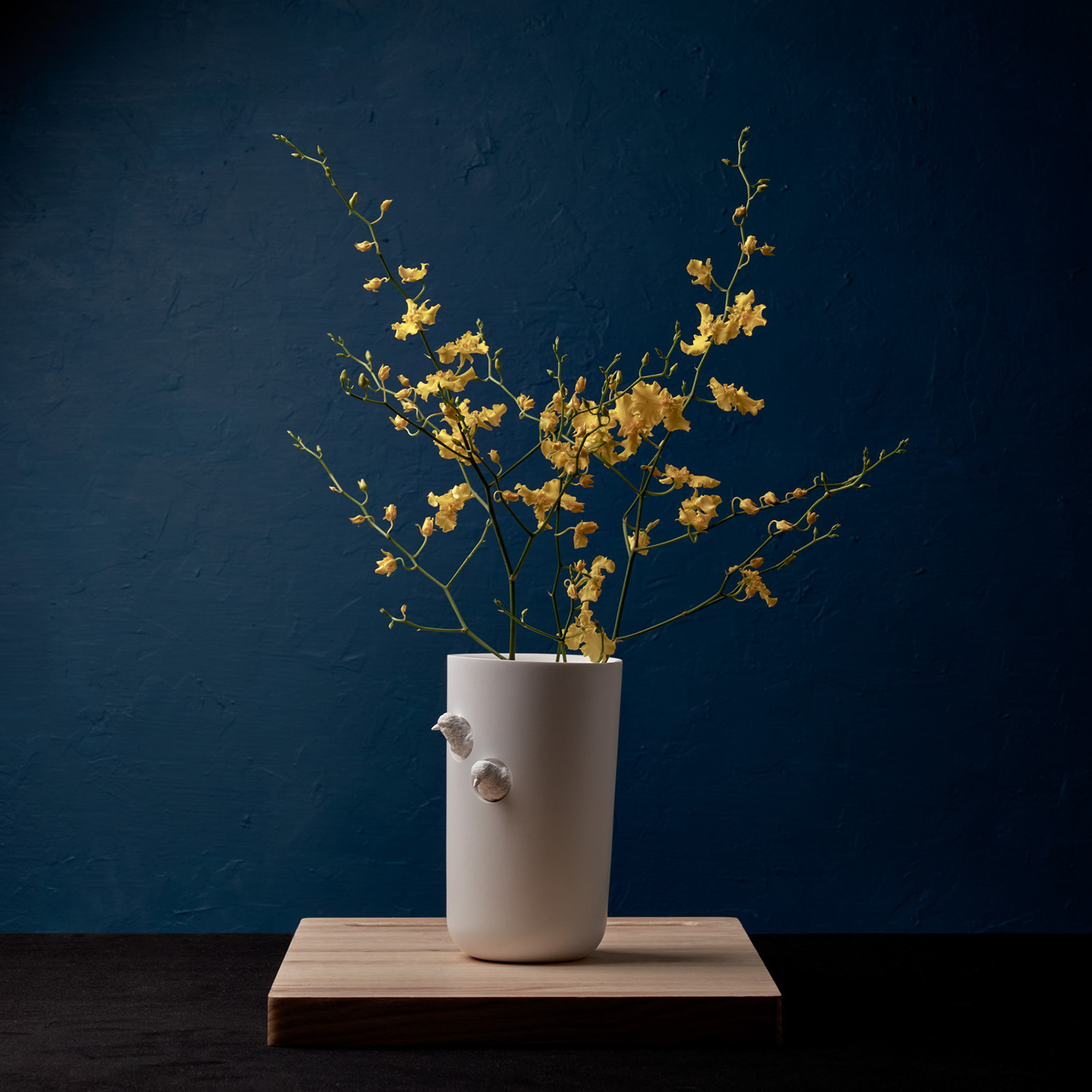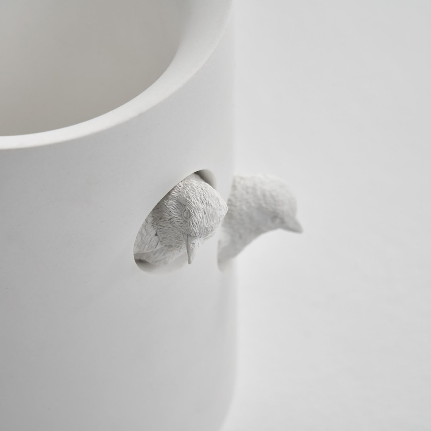 Crafted of pure white marble, the Sparrow Vase is modern, but warm, with motifs of sparrows and leaves that are simple and artistic, but tranquil and clean.