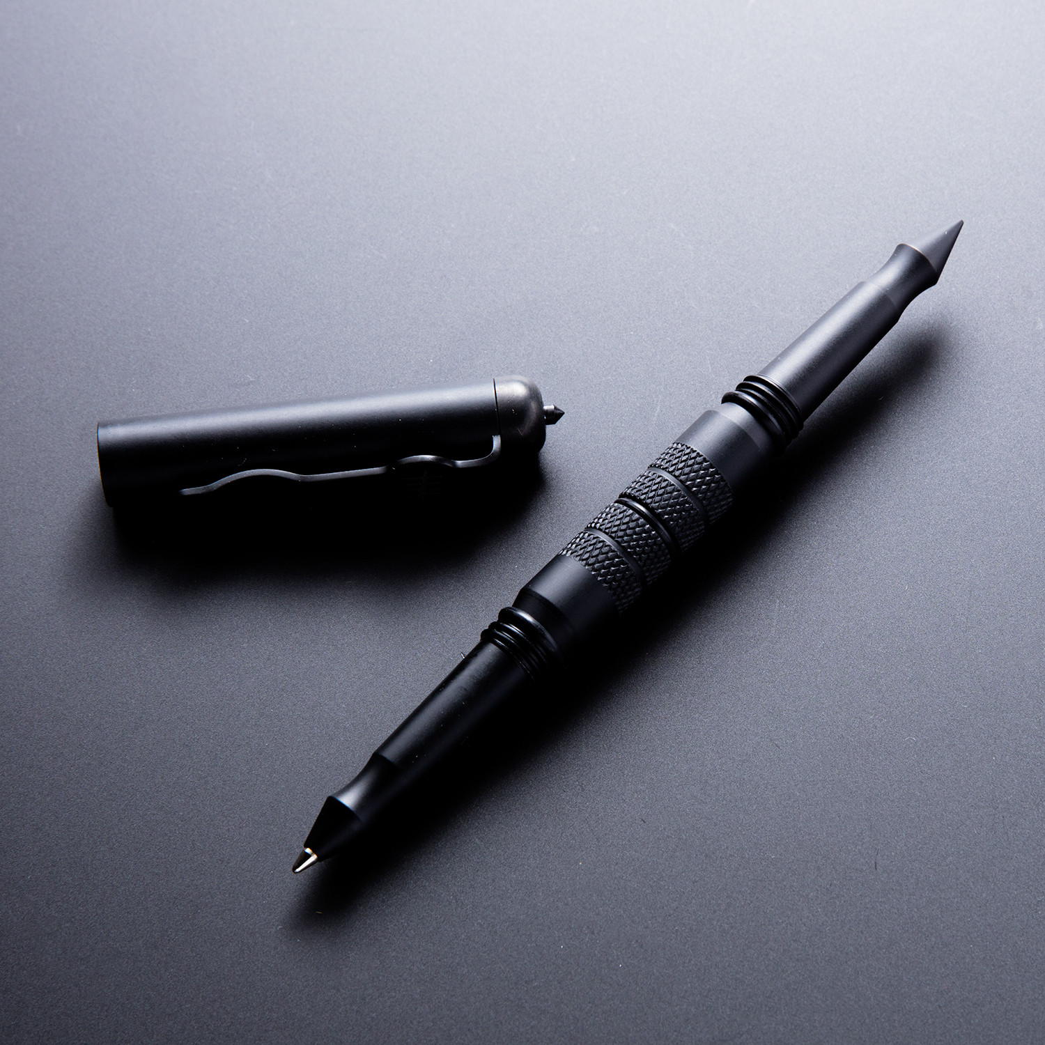 The HHA TWI-01C (Tactical Writing Instrument) features a dome shaped crown constructed from high-grade stainless steel, and a carbide tip that can be used as a glass break in an emergency situation. At the opposing end we have incorporated a pointed tip for sensitive investigative work and for use as a PDA stylus. The entire shaft of the pen is constructed from 6000 series, non-reflective black anodized aluminum for extreme longevity and wearability. The TWI-01C includes a series of O-rings making it completely waterproof when the cap is screwed down over the writing tip. Knurling along the pen aids a positive grip.