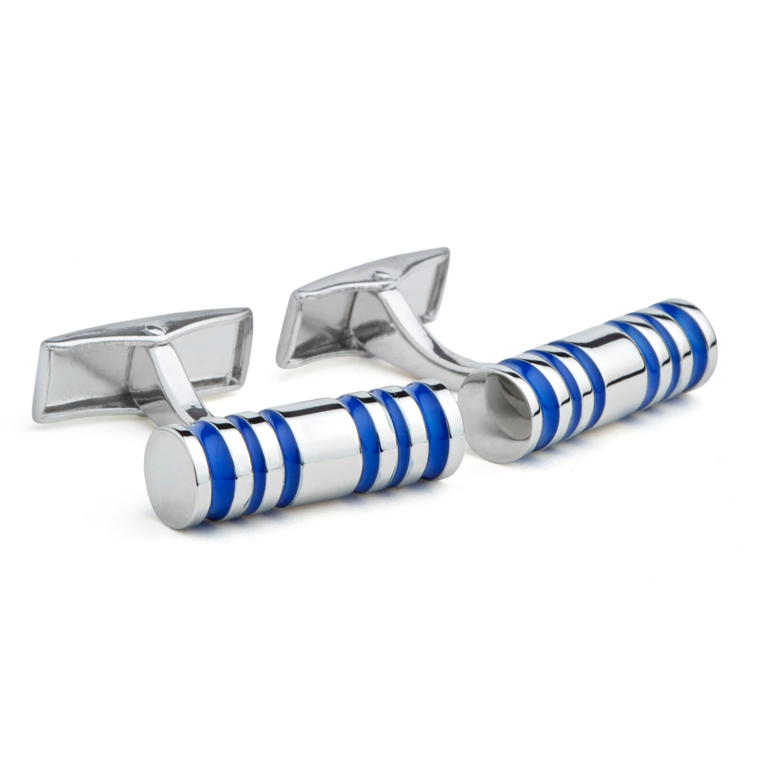 These Hart Schaffner Marx Cufflinks embody the American tradition of dressing up and dressing well. Done in a Blue Striped pattern, and made out of Rhodium Plated Brass, they're the perfect finishing touch to a smart suit.