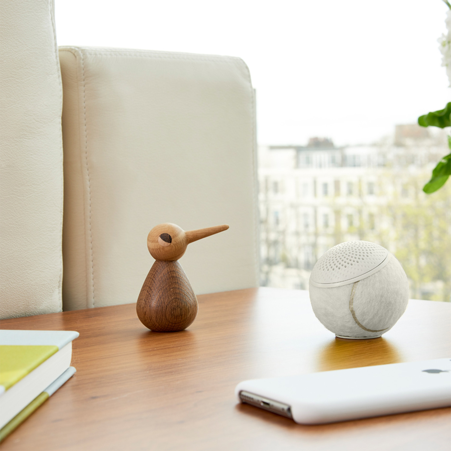 The tennis ball lives on to become an icon of hope and peace with the hearO for heroes. This second edition hearO wireless speaker is made with a tennis ball maker in the United Kingdom. It features one button functionality, and is ready to pair with any media device in any location. It comes with its own charging cradle, USB cable, and tin.