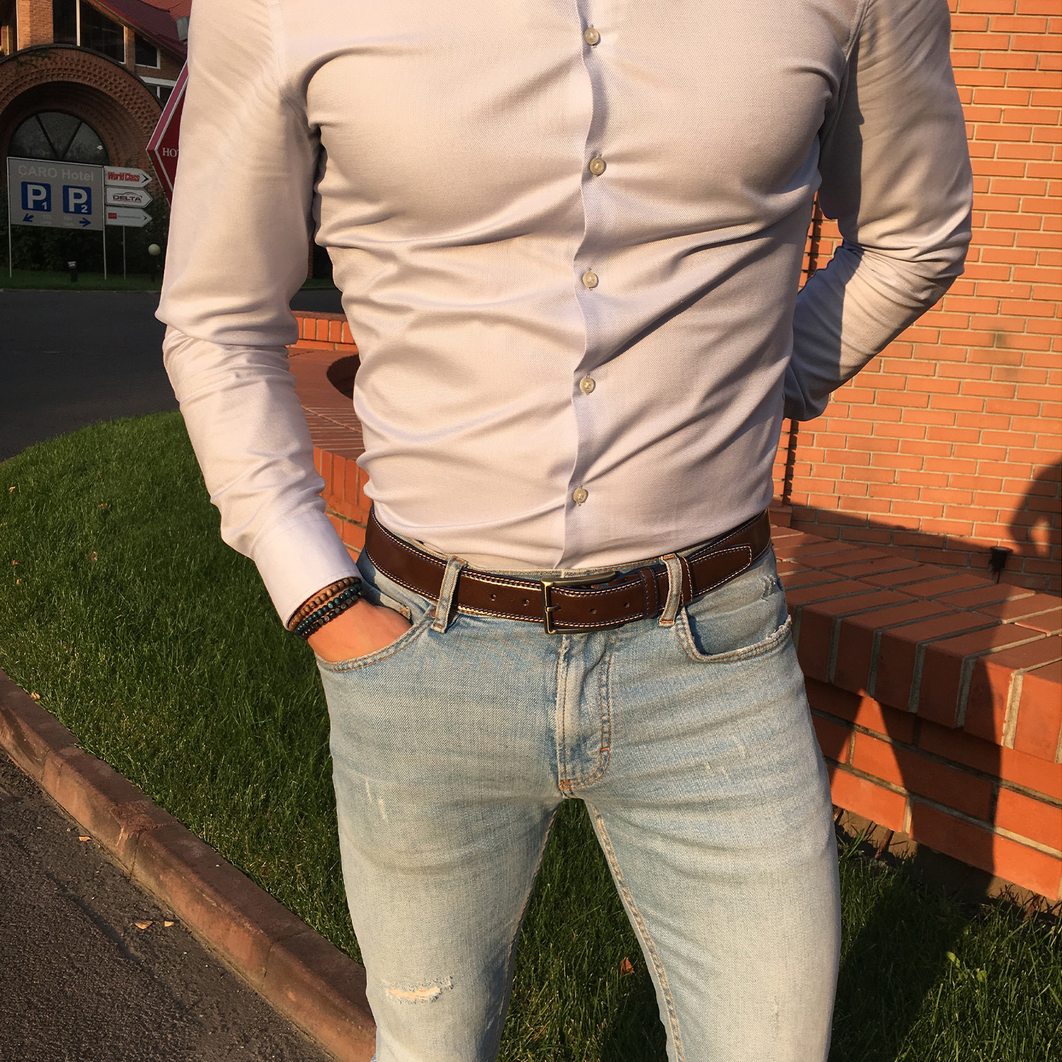 Reagan 3.5 Cm Stitch Belt // Brown