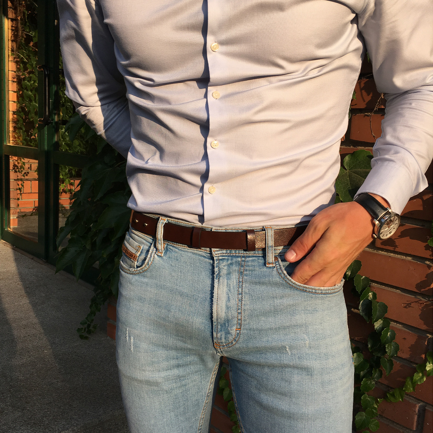 Sourced from one of Italy’s best tanneries, Skylar is an innovative redesign of classic men’s belts. The lack of a buckle gives this belt a sleek, clean look that is truly unique. The lustrous, full grain leather belt and metal rivets are handcrafted by skilled artisans, ensuring that every belt is strong, and retains its shape. Fully customizable, the metal hardware can easily be changed from nickel, to gold, and back again, to match your watch, cufflinks, and other accessories. This belt is the perfect final touch to complete any modern look.