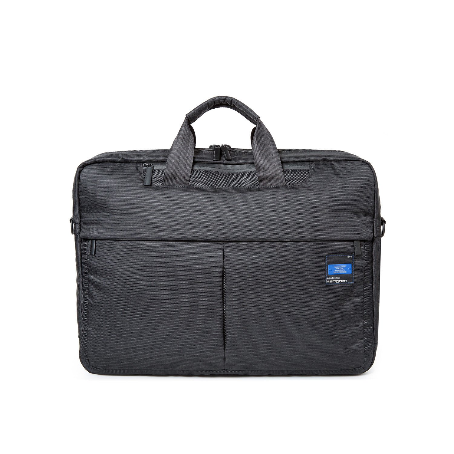 This 15" business bag contains two separate interior compartments, which makes it easy to organize your belongs. Banker fits a 15" laptop, A4 sized documents and a tablet and has a separate pocket for pens. The shoulder strap is adjustable and removable and you can attach it to a trolley.