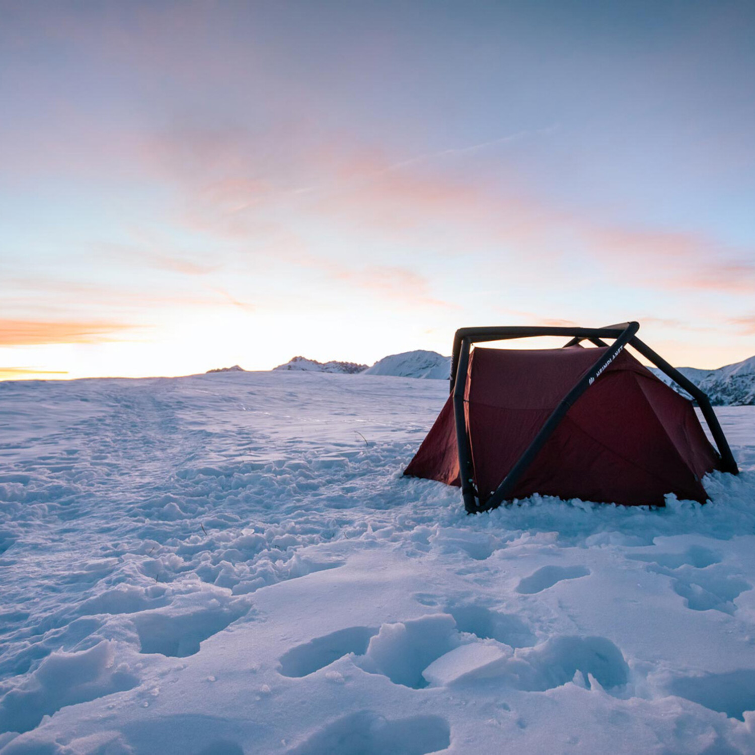 KIRRA 4-Season is HEIMPLANET's inflatable tent for 2 people with a lot of equipment. Thanks to its special frame structure, KIRRA offers a good balance between comfort and efficiency. The geodesic principle makes the tent particularly storm-proof. The inflatable Diamond Grid (IDG) guarantees not only stability, but also an intuitive and easy setup, so you can get the most out of your trip. Kirra is a perfect solution for alpine tours where great stability is mandatory.