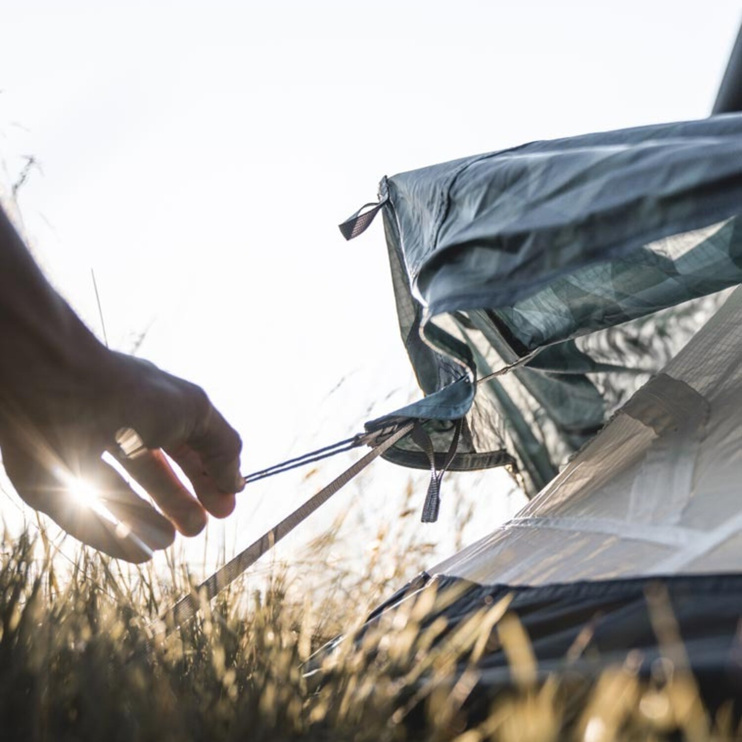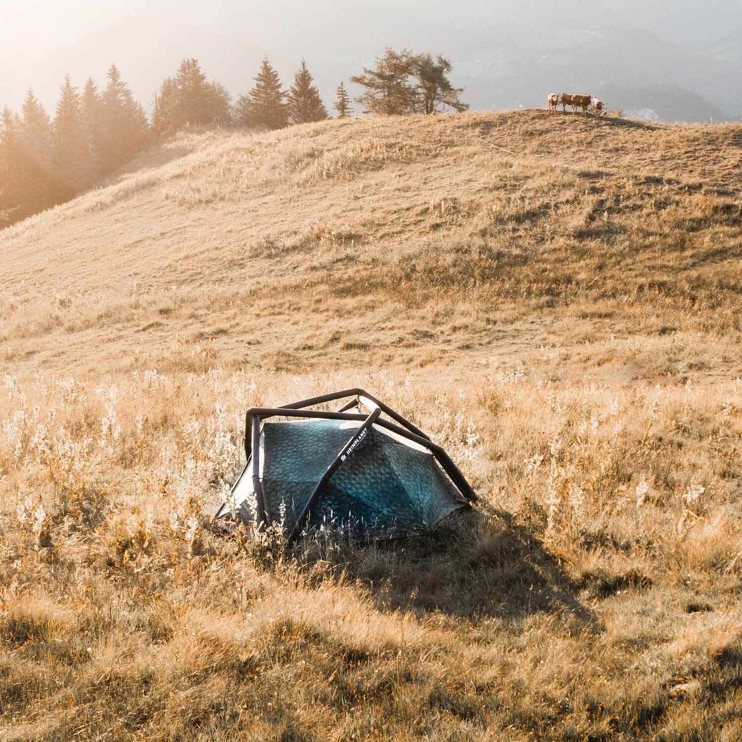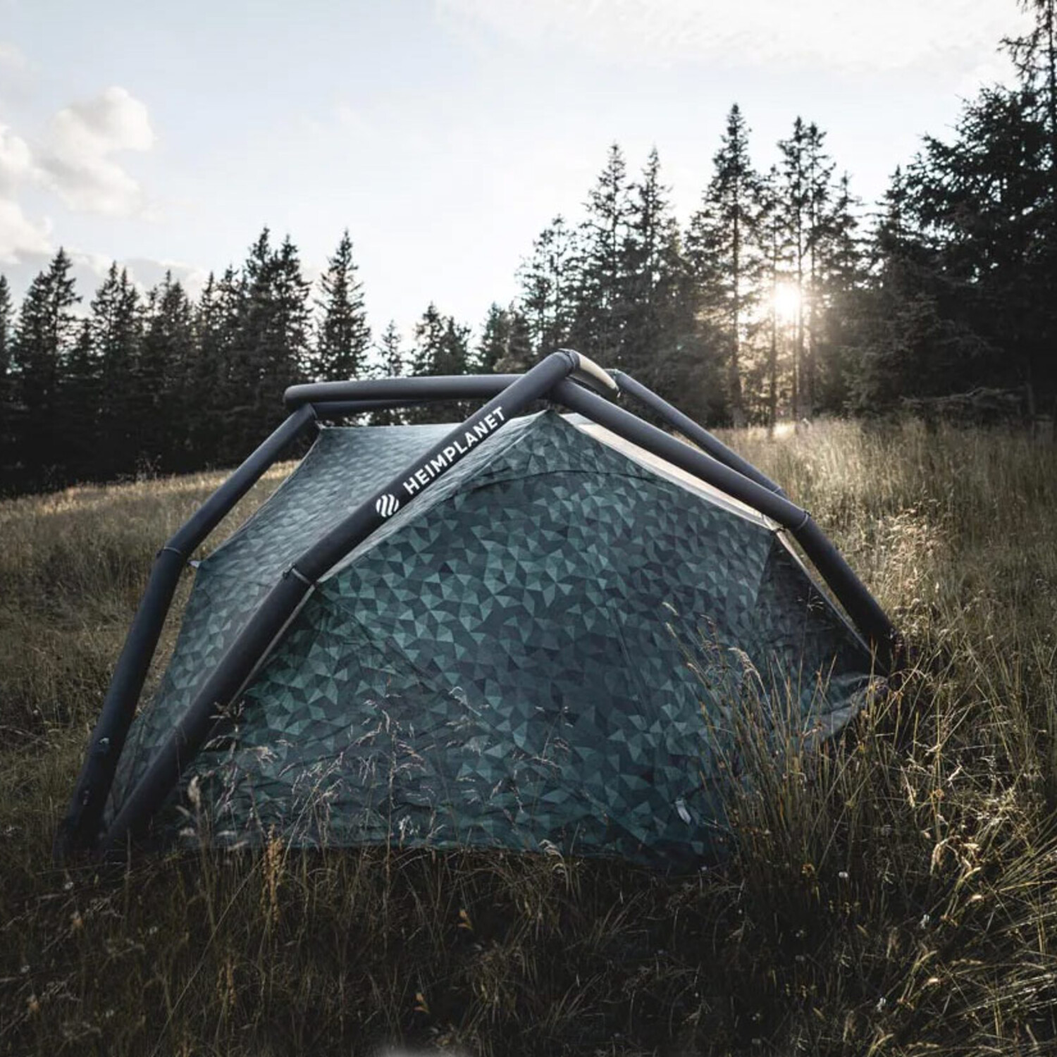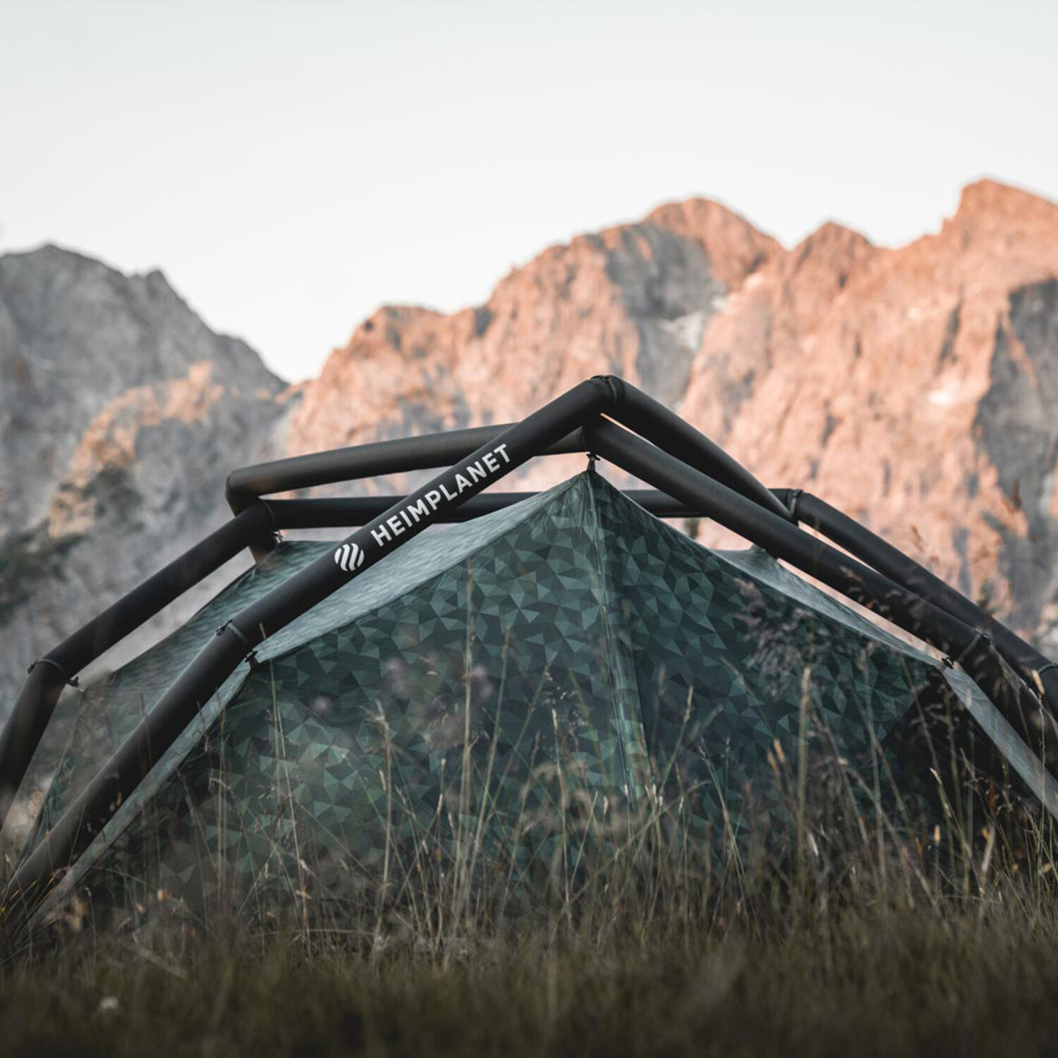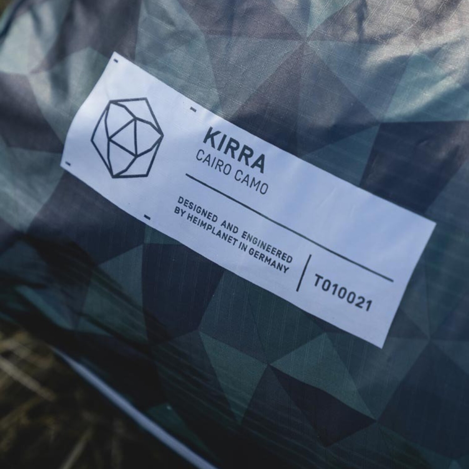 KIRRA Cairo Camo is HEIMPLANET's inflatable tent for 2 people with a lot of equipment. Thanks to its special frame structure, KIRRA offers a good balance between comfort and efficiency. The geodesic principle makes the tent particularly storm-proof. The inflatable Diamond Grid (IDG) guarantees not only stability, but also an intuitive and easy setup, so you can get the most out of your trip. Kirra is a perfect solution for alpine tours where great stability is mandatory.