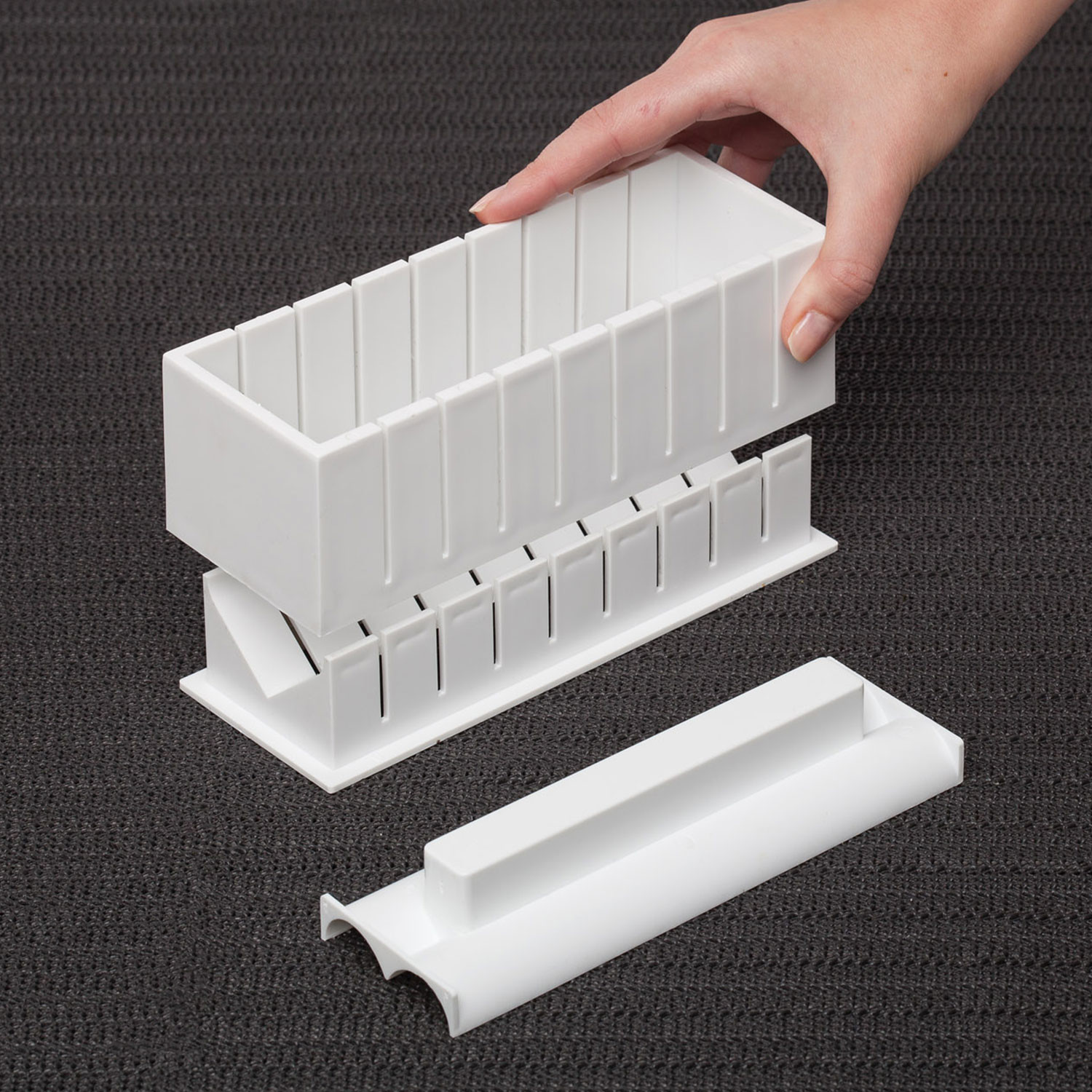 The Sushi Making Kit was made with FDA-approved, BPA free polypropylene. It has everything you need to make delicious sushi — simply line one of the molds with nori, spoon in the rice, add fillings, and compress the mold firmly with the lid and your unique sushi creation is ready!