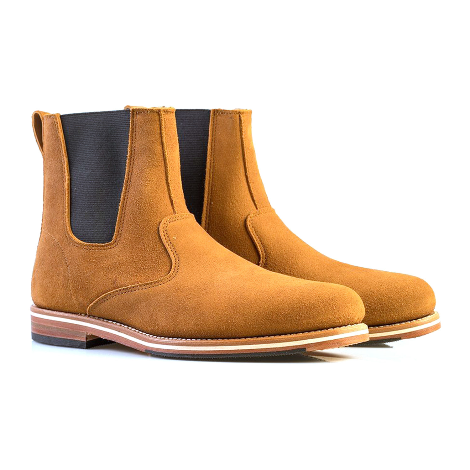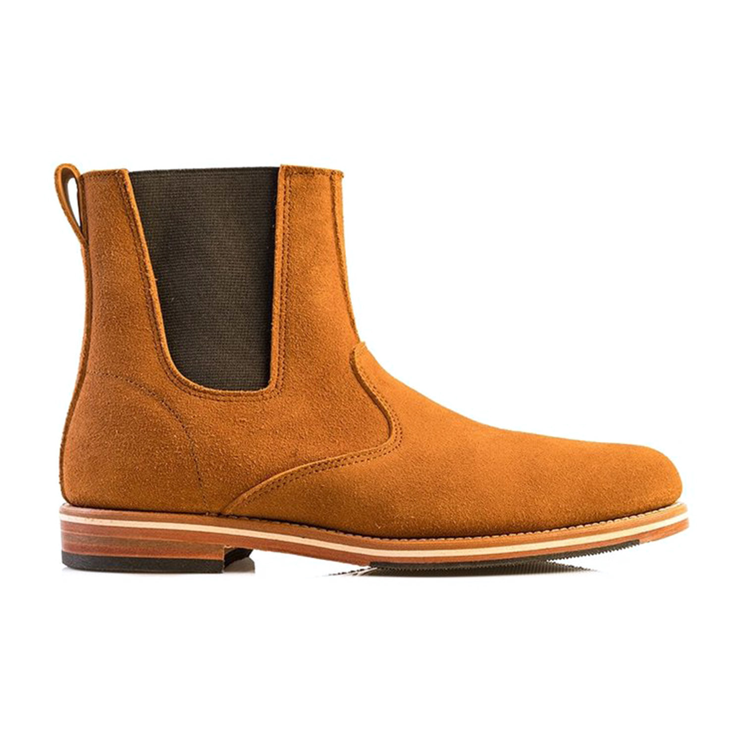 The Riley takes a Chelsea and combines it with a desert boot, blending classic designs for a modernized style. Using a soft and pliable Peanut Suede, the upper will age uniquely with each wearer, making every boot its own individual pair. The narrow toe gives it a sleek and distinguished profile, while the Fineline sole lends a dress element to this casual style and makes it more versatile and contemporary than other Chelsea boots.
