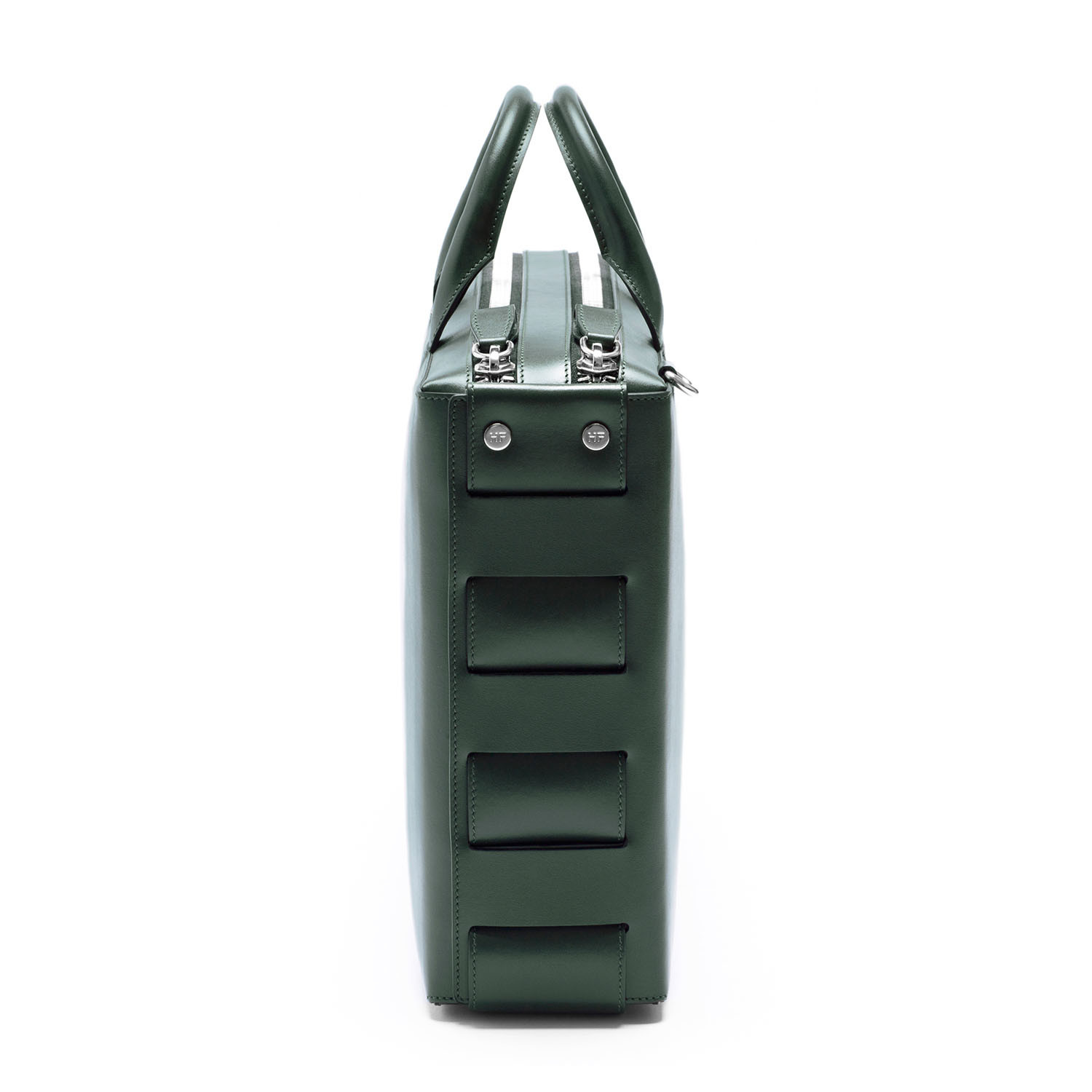 French style meets Italian craftsmanship in this luxuriously designed Treccia Grand Briefcase. Made from rich, supple, calfskin leather and complete with signature Héritier Frères lining, it offers ample room for your files and tech, complete with a sleek and timeless design that adds a sophisticated finishing touch to any business attire.
