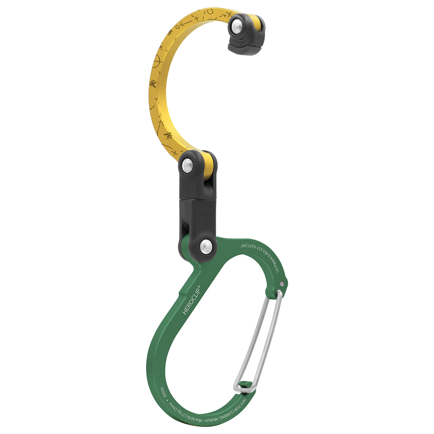 The ideal size for handling large and awkward items, Heroclip gear clip lets you hook and hang big backpacks from trees, duffle bags from fences, buckets from ladders, and carry-ons from bathroom stalls. The versatile gear clip hangs securely, rotates a full 360 degrees, and folds compactly in ways other carabiners, clips, and hooks can’t— helping you keep your gear organized and exactly where you want it, no matter the activity.