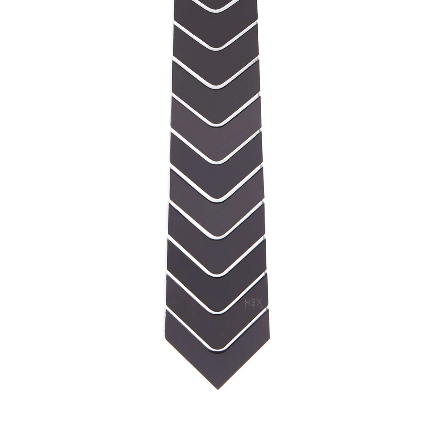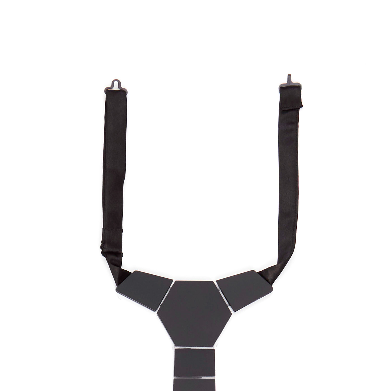 With a unique vanguardist design, the Alter Tie is made of lightweight black polymers embodying a transformative design that changes at every turn. Assembled by hand, each tie reflects a custom setting, giving each piece a one-of-a-kind design. This eye-catching tie is sure to be a conversation starter.