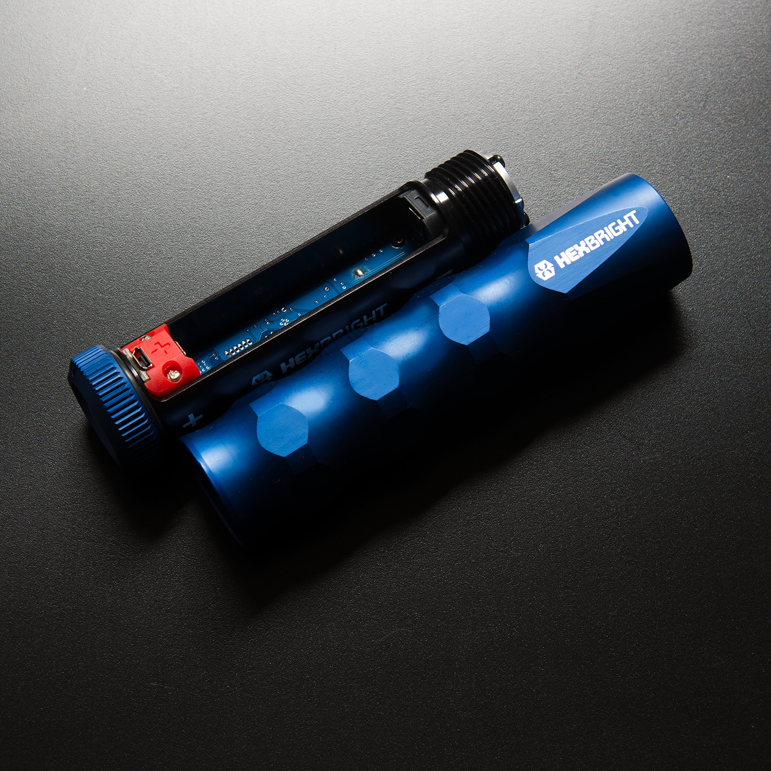 The ergonomic grip is machined from aircraft-grade aluminum and feels perfect in your hand. But it's not just pretty — HexBright FLEX is rugged and built to withstand the elements. With a rechargeable lithium ion battery, the HexBright FLEX can stay on for up to thirty hours on its lowest mode, and can be recharged with a USB! It's the upgraded flashlight that can last you a lifetime.