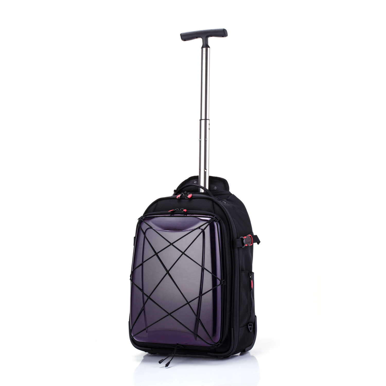 Totally compact, the Hybrid Gear 2Way Carry-On is perfect for commuters who need to transport business items and personal effects, or for students lugging around heavy textbooks. Rendered in nylon with a protective ABS shell to accommodate a mid-size personal computer, the bag can be pulled with its retractable handle and wheels, or carried as a backpack (the straps unzip). Reliable and versatile, this 19 carry-on makes business a pleasure.