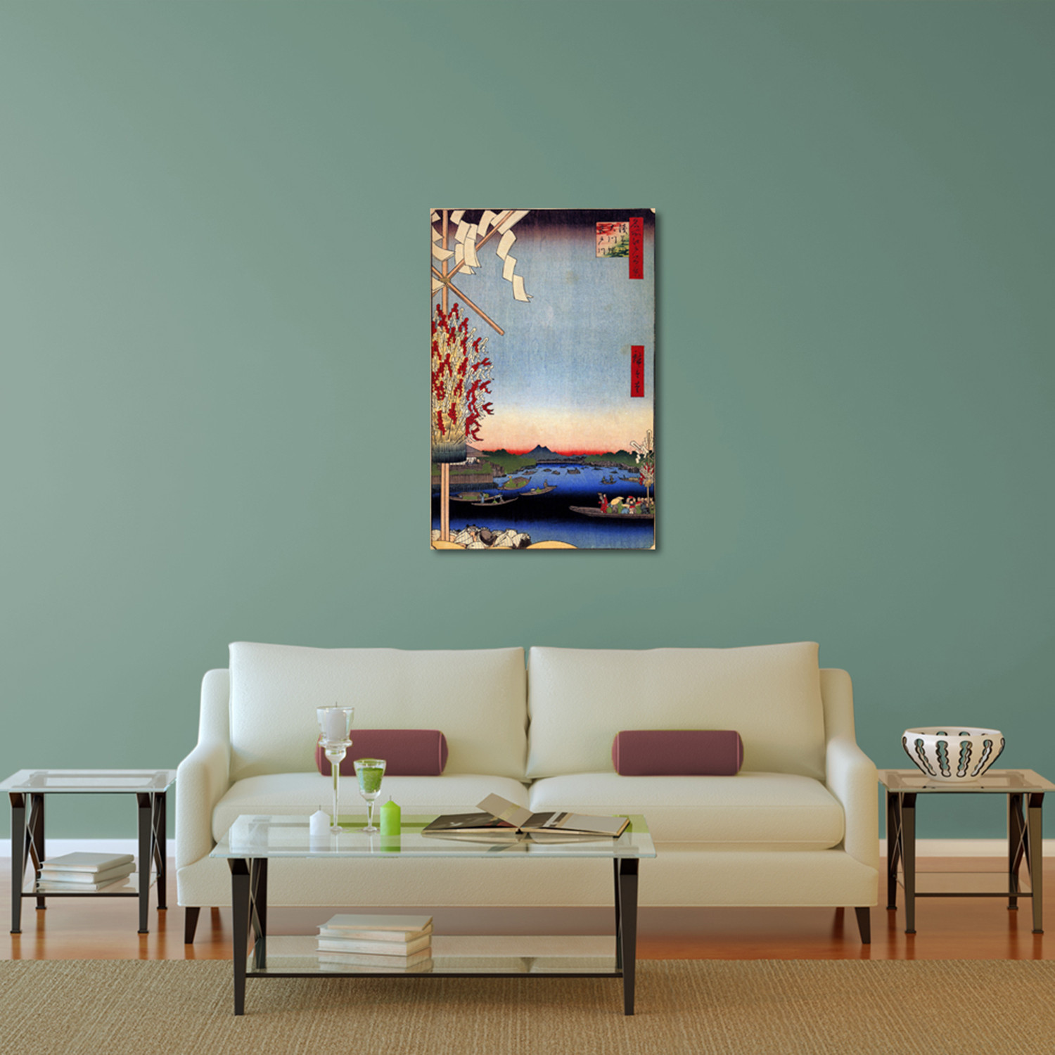 One of over 8,000 works produced by the master Hiroshige, Asakusa River is one of the more famous of his master prints. Created in a dreamlike style that evokes memories of an ancient Japan, this print has been stretched on gallery-quality canvas over natural wood, and arrives ready to hang.