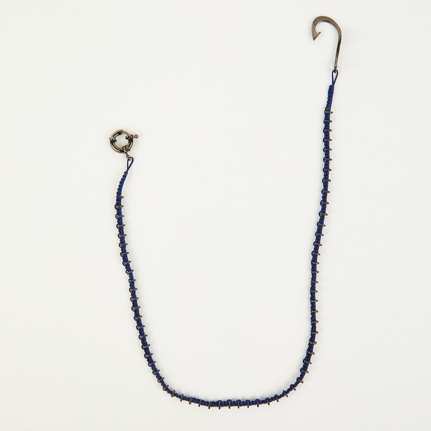 Rustic Pocket Chain // Dark Blue Ropes + Gray Hematite Stones