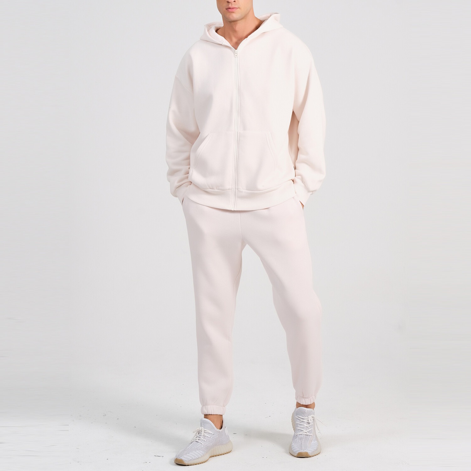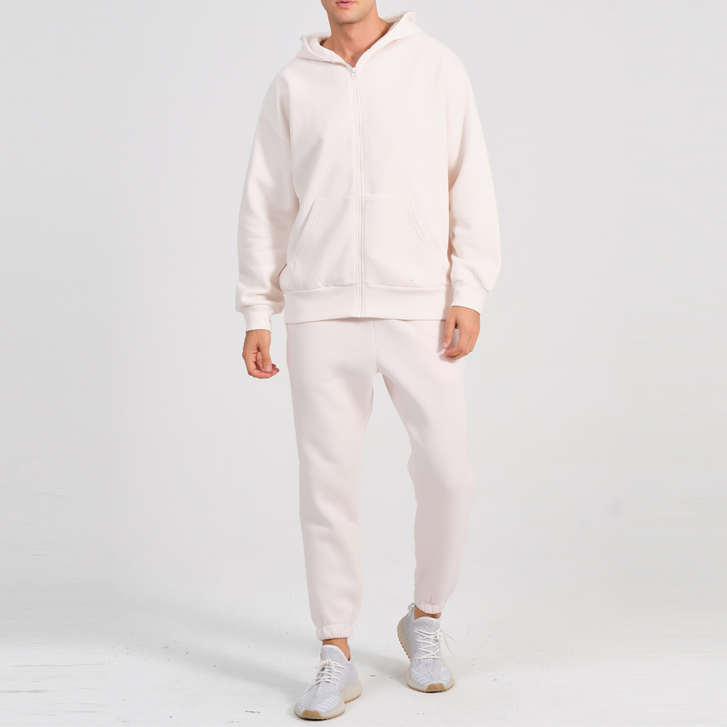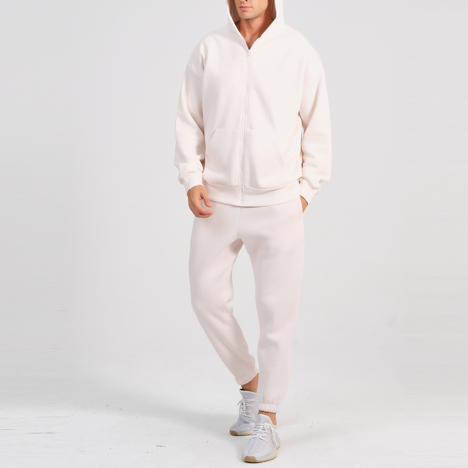 Axa Zip Up Hoodie Track Suit Set // Cream