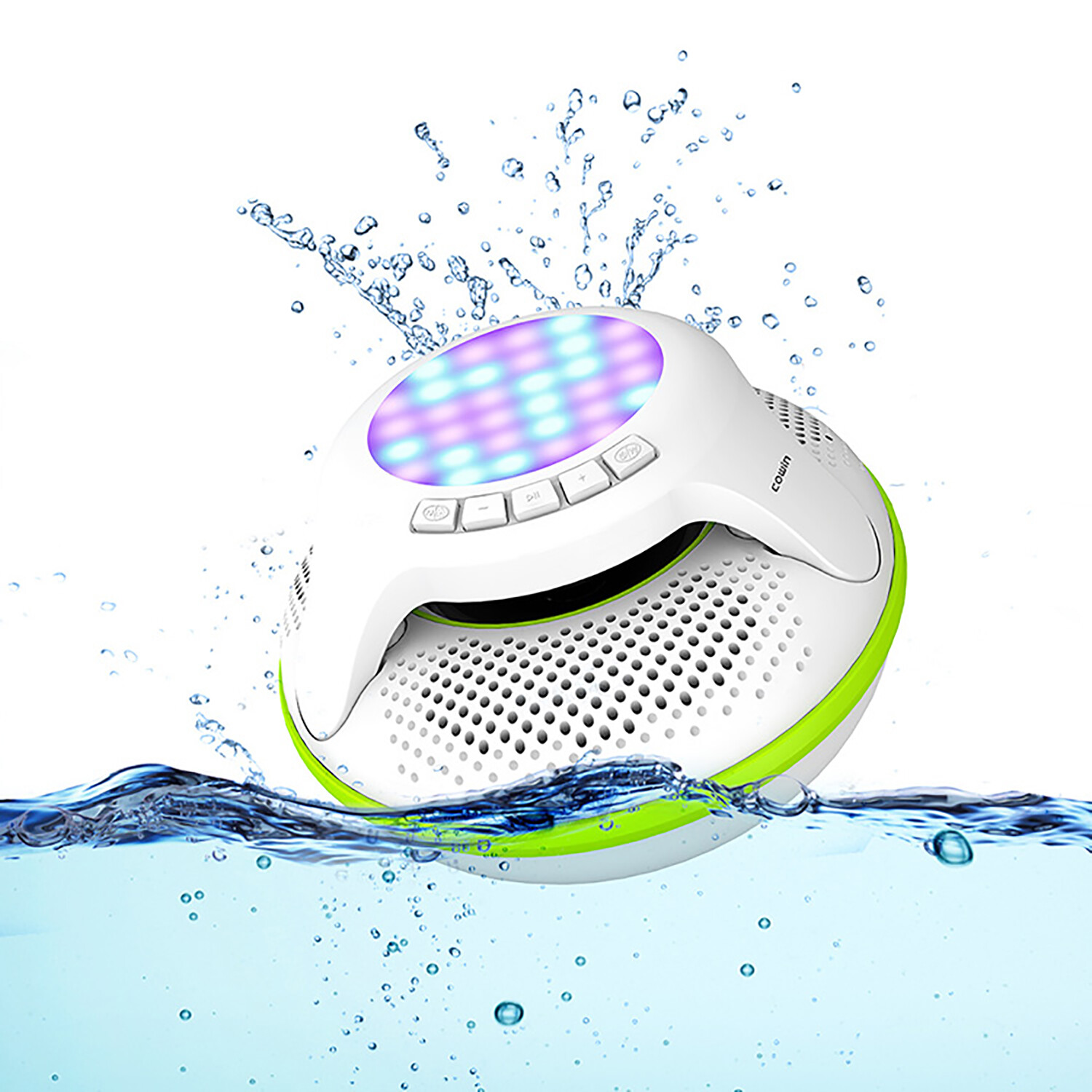 Swimmer features 8W tweeters and 3 passive radiators to provide full-spectrum audio, rich bass, and stunning clarity at any listening level. Advanced Bluetooth 5.0 makes it super easy to pair and creates a seamless connection with a reliable wireless range of 30 feet. The addition of 21 RGB LEDs lets you create the ultimate light show with 5 color modes to sync with your music or fit your mood.