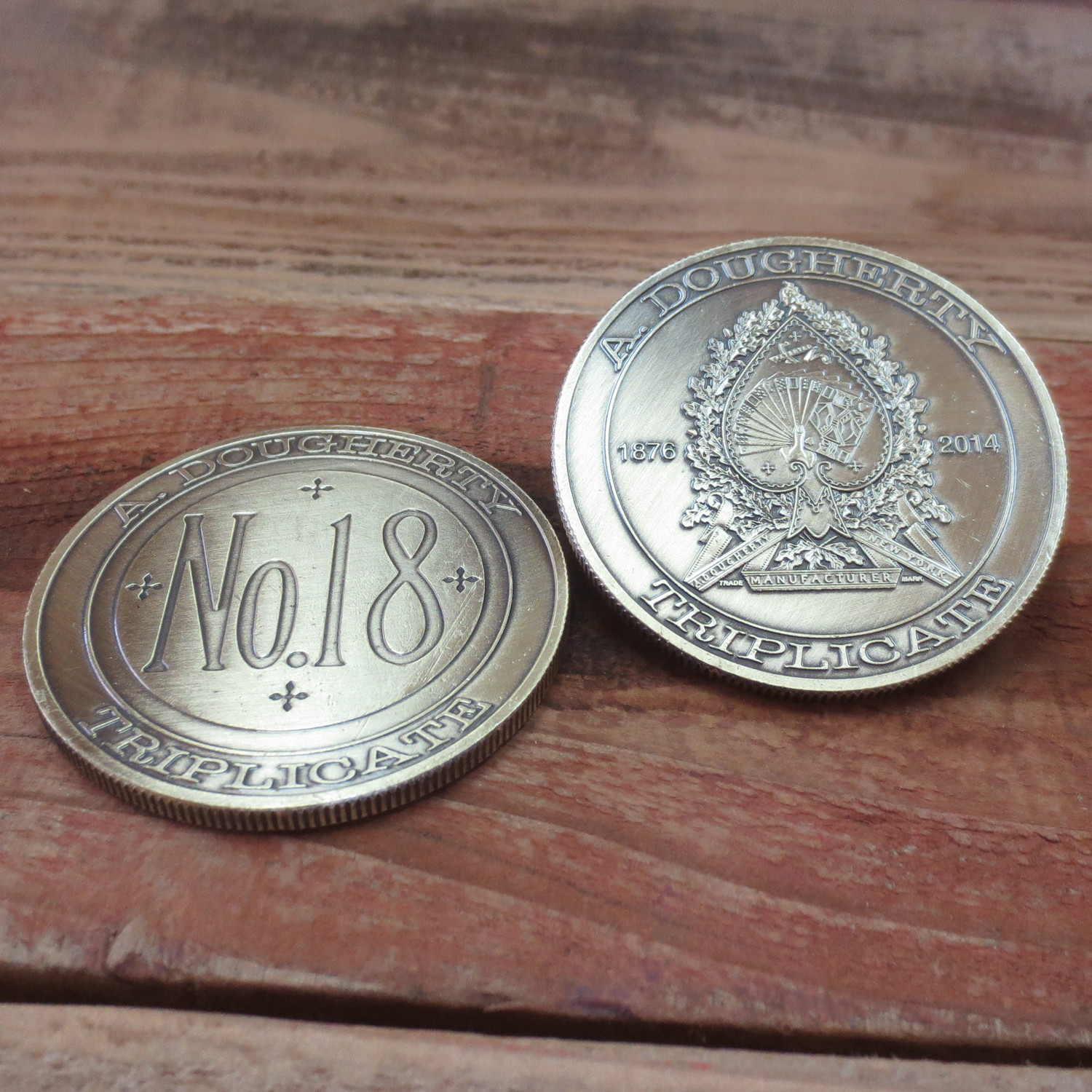 The Triplicate No.18 Cover Coin was the first of its kind, and was an integral part in the way the Triplicate deck revolutionized the way cards could be held and viewed. The United States Playing Card Company has worked with Home Run Games during the restoration of this beautiful, limited-edition 2" coin. After 6 months of researching archives, designing, and formatting — as well as the hundreds of hours which have been put into re-drawing the art — this treasure has been brought back to life.