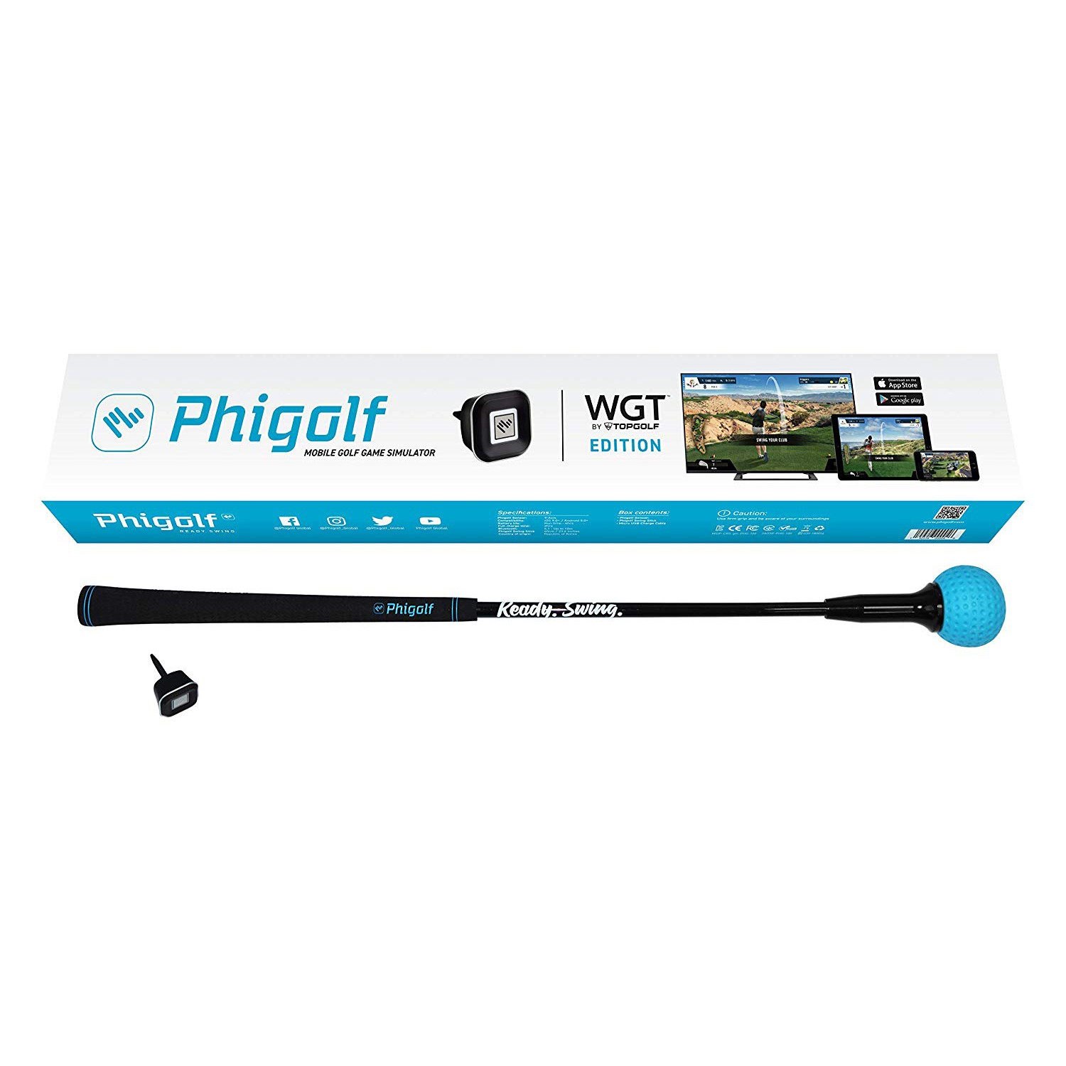 This bundle also includes PhiGolf WGT Edition, a brand-new way to play your favorite golf game! You can use your real golf swing on world famous Championship course on this mobile golf game simulator. The 9-axis 3D swing sensor picks up your motion through the PhiGolf swing stick and uses realistic graphics to show your swing in real-time on screen.