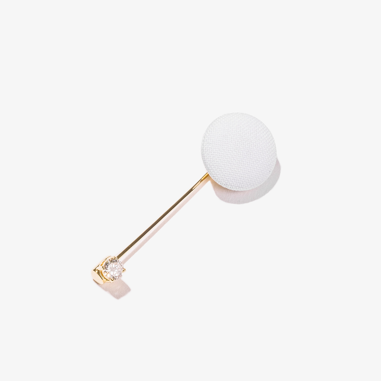 These sleek but bold lapel pins are modeled after the very same ones that Chris can often be seen wearing while out and about, and feature gold-plated sticks, fabric-covered buttons, and cubic zirconia ends.