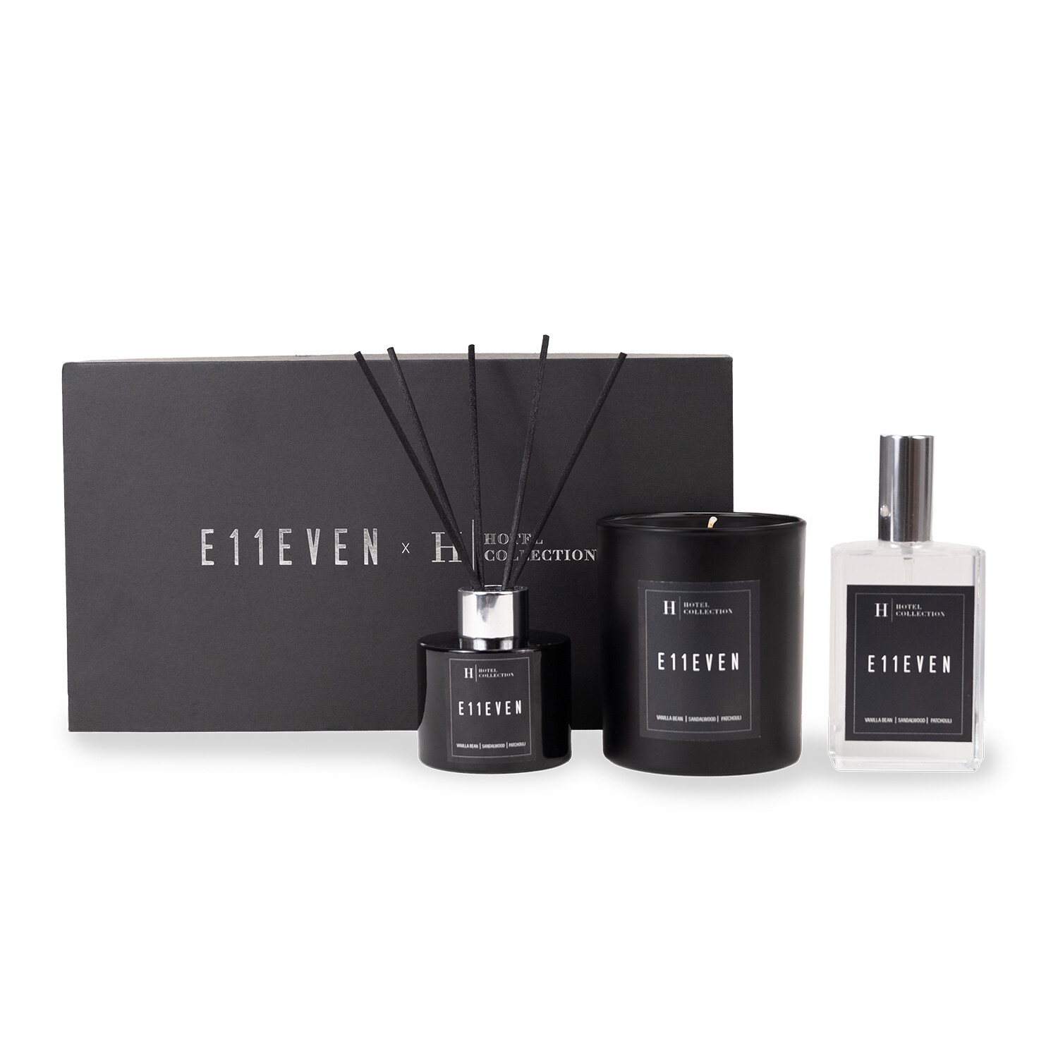 Enjoy VIP-status everyday with the E11EVEN Gift Set. Bring home the luxury and excitement of a night out at E11EVEN in Miami. With notes of sandalwood, vanilla bean and patchouli, this exclusive scent will bring all the glitz and splendor to your space.