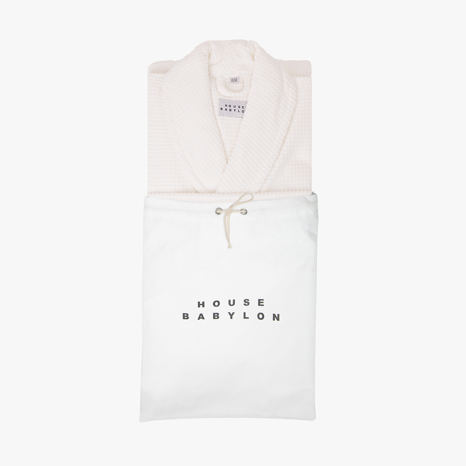 House Babylon’s Velour Bathrobe is crafted from organic Turkish cotton and are Oeko-Tex certified to be fully free of any harmful chemicals. The terrycloth bathrobe is made of 450 GSM long cotton fibers for maximum fluffiness and absorbency. Branded embroidery is sewn on the chest area. This unisex bathrobe offers a relaxed fit and spacious pockets.