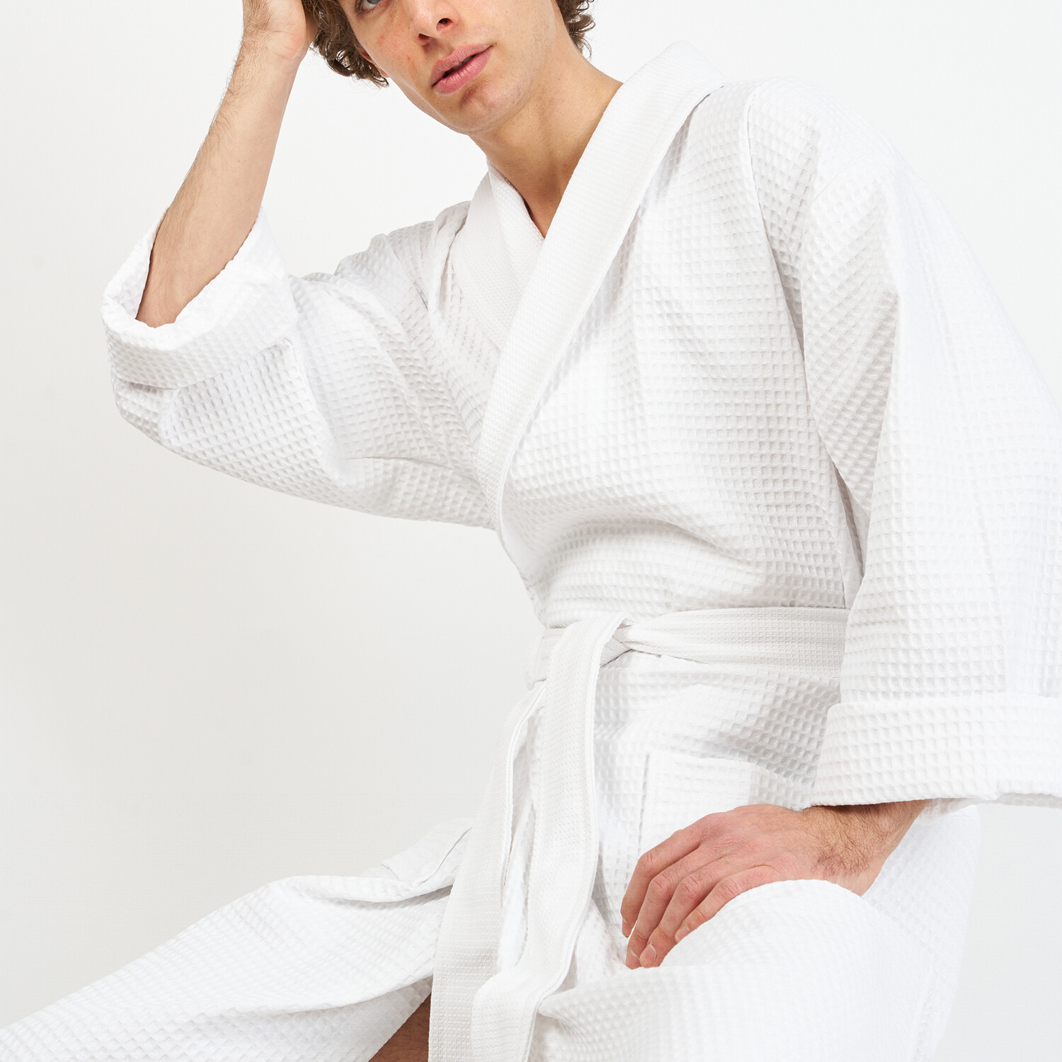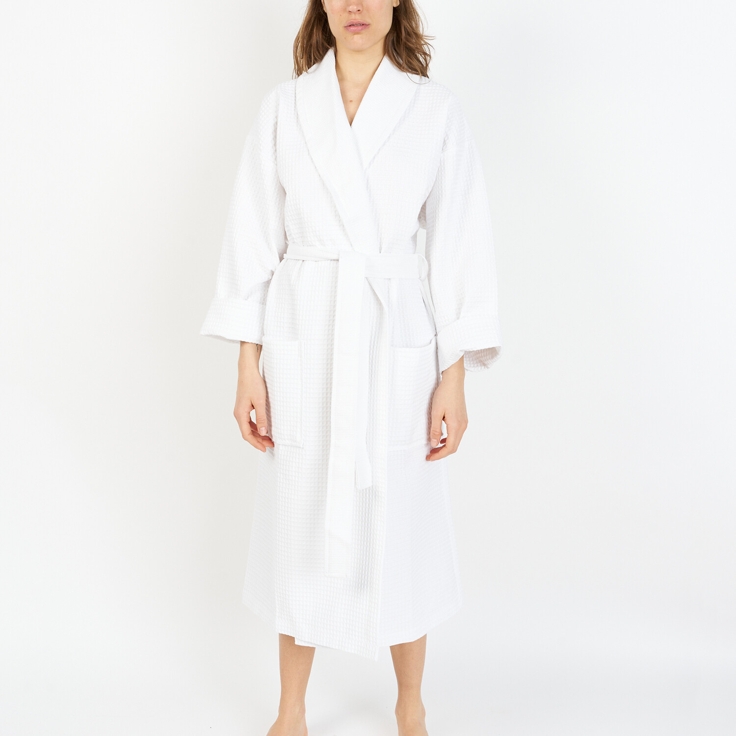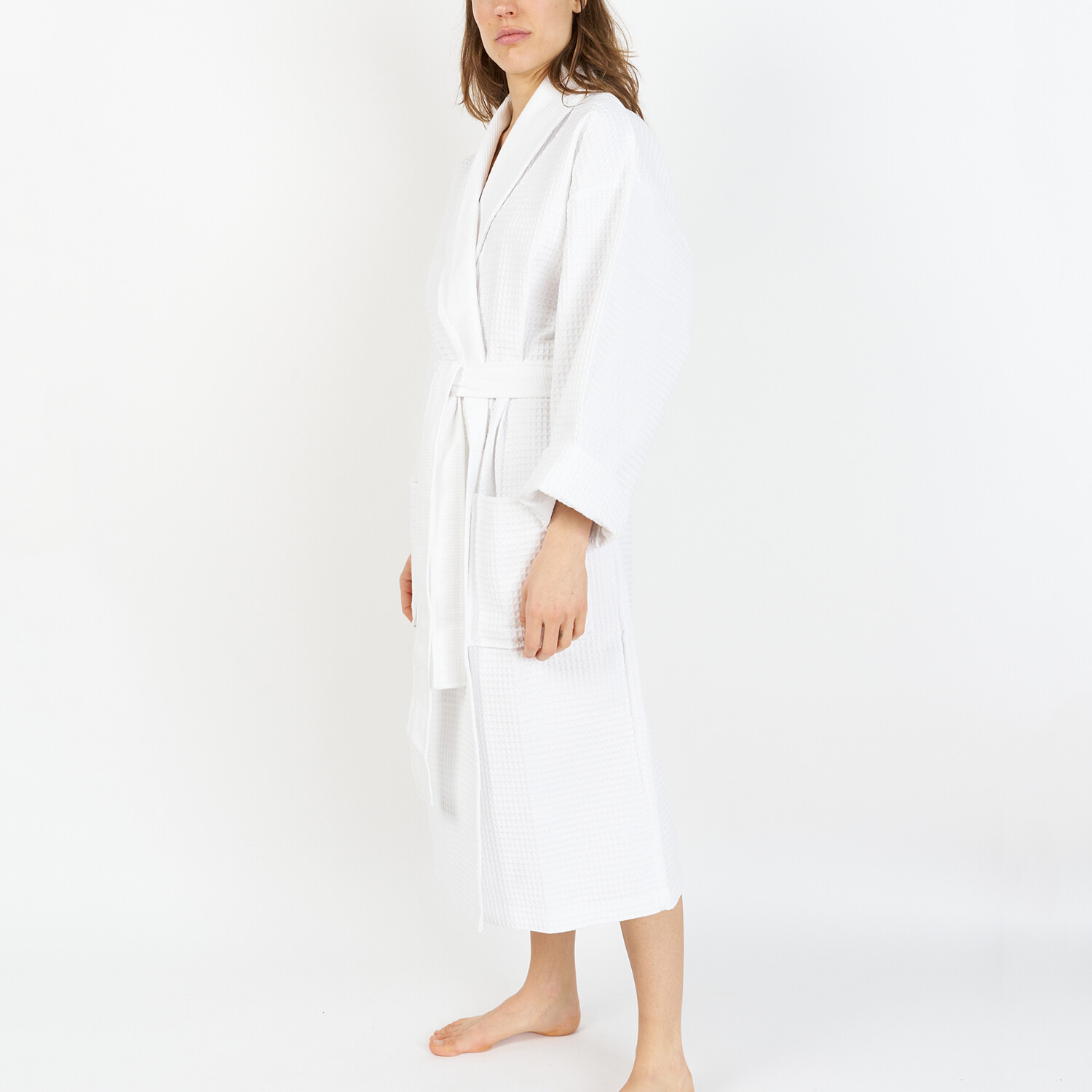 House Babylon’s waffle bathrobe is crafted from organic Turkish cotton and are Oeko-Tex certified to be fully free of any harmful chemicals. The waffle bathrobe is lightweight, softly textured and made from 100% Turkish cotton at 230 grams per square meter. This unisex bathrobe offers a relaxed fit featuring a lapel and capacious pockets. Made in Turkey.