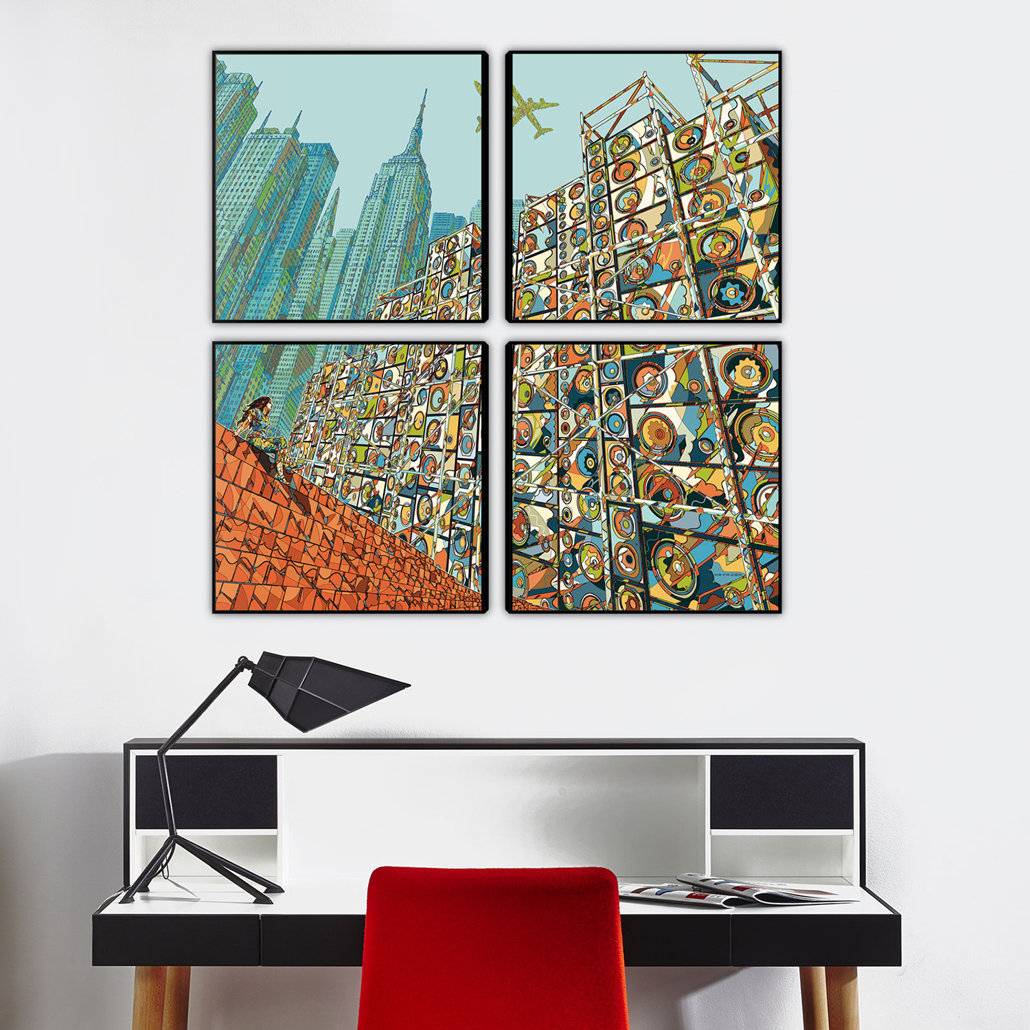 This 4-panel print from Japanese artist HR-FM is a hand-signed piece, that comes complete with an easy hanging kit. Framed in rich wood, it's a gorgeous, one-of-a-kind giclee-printed illustration that will liven up any wall.