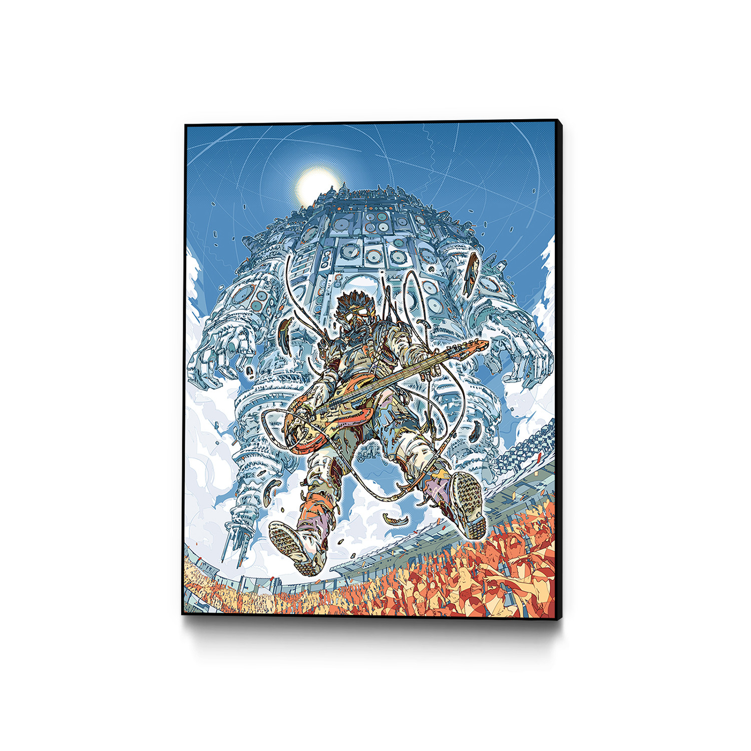 This float-mounted print from Japanese artist HR-FM is a hand-signed piece, that comes complete with an easy hanging kit. Framed in rich wood, it's a gorgeous, one-of-a-kind giclee-printed illustration that will liven up any wall.