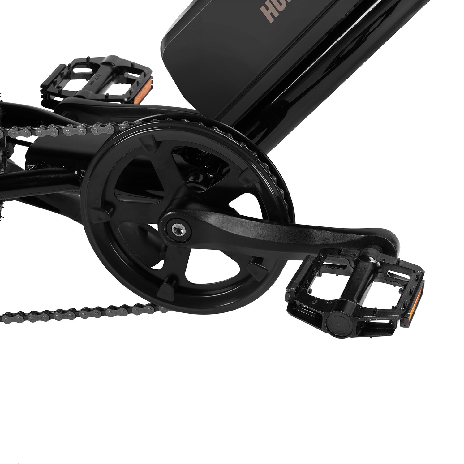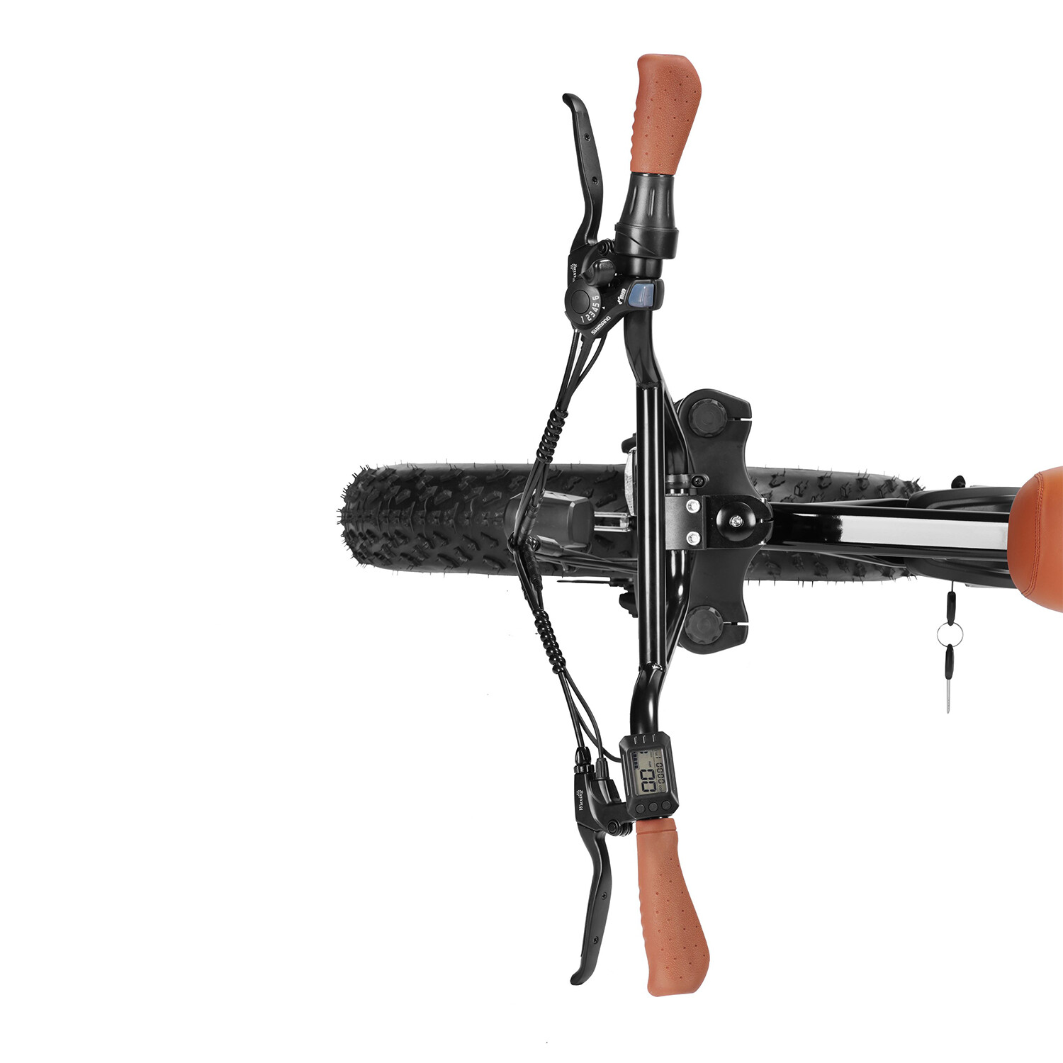 With a low center of gravity, wide comfy seat, and small 20-inch alloy double wall wheels, the e-mini bike is ultra-comfortable, and cruises like a mini motorcycle. Super stable, powerful and tons of fun, Mini Swell delivers 500 watts with pedal assist and throttle to haul your surfboard to the break at speed. The bike cruises up to 20 mph, and features a front suspension fork to smooth out the road. The durable steel frame and the huge 4” tires of the bike allow a forgiving ride on rougher surfaces, while the 6-speed drive train assists smooth shifting. The alloy disk brakes on the Mini Swell gives you the ultimate stopping power in all conditions.