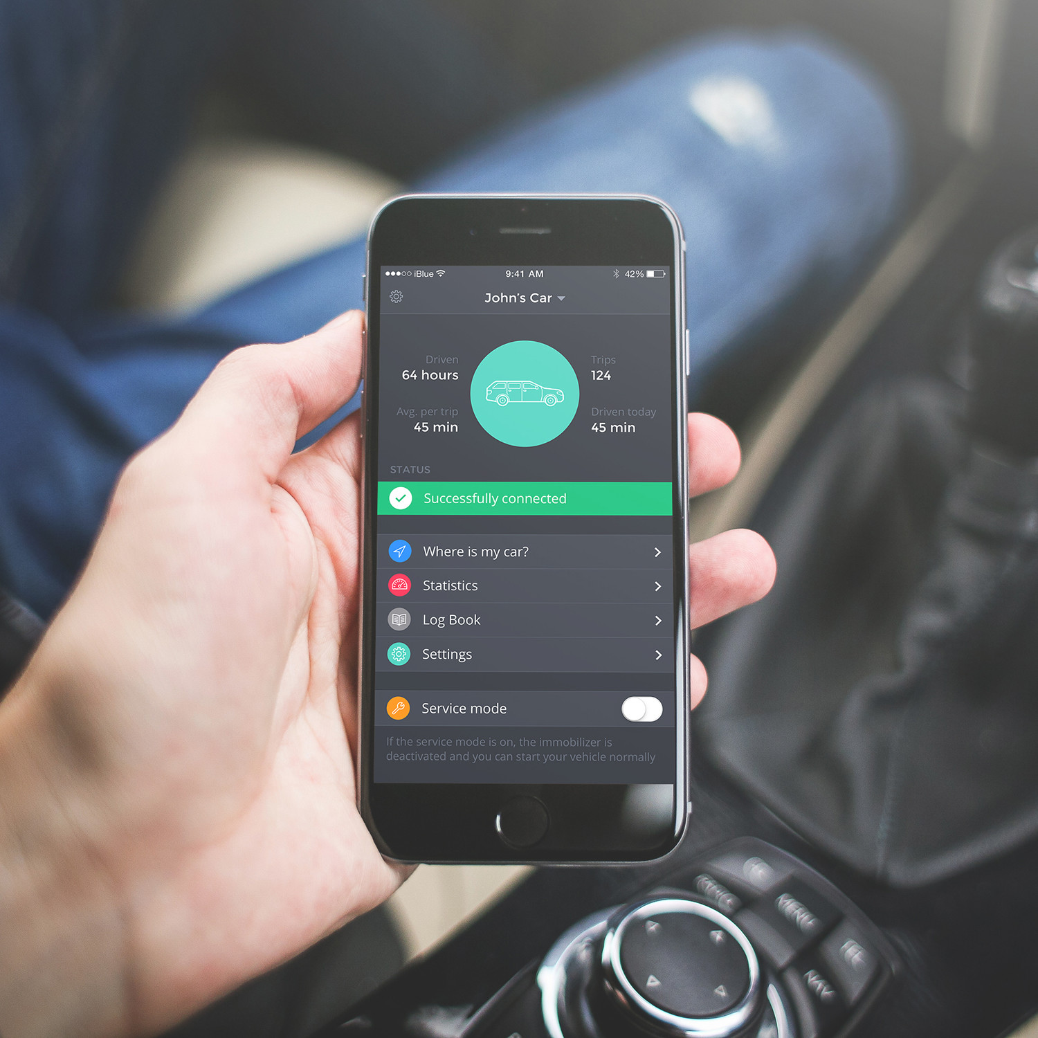 With iBlue Immobilizer, you can protect your car with your phone. It's a small box that connects to your car, so you can only start it when your phone is with you. Just pair the device with your phone in seconds and create a secure, 6-digit code which enables you to start your car. While you drive, the app stores route information and even remembers where you parked when you stop, so you can always find your car.