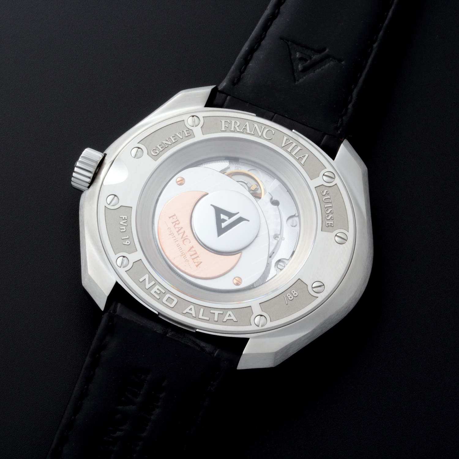 Franc Vila developed his finely hand-crafted complicated wristwatches and fundamentally reinvented forms, building into the future by respecting the past, creating watches like this Franc Vila Neo Automatic, that are contemporary while retaining their classical spirit. Franc Vila creations are an individual and exceptional global approach where all the elements —case, dial, strap, mechanism, rotos, screws, crown and hands— form a unique and indissociable whole in which modernity, beauty, quality, precision and exclusivity play a balanced role.