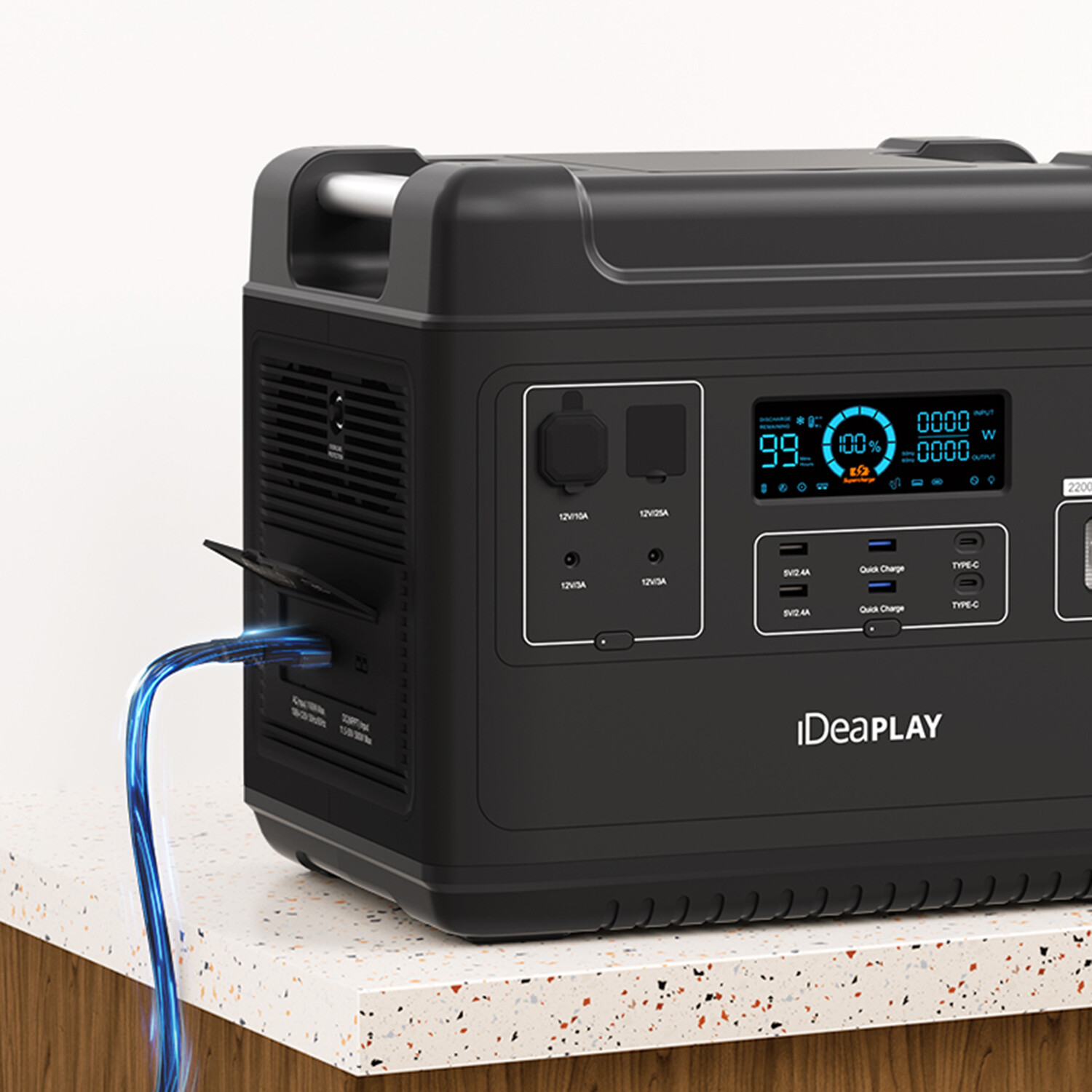 IDEAPLAY Portable Power Stations are specially designed with your safety and comfort in mind. Using innovative charging technologies, a user-friendly design, and high-power configuration, this portable generator is an excellent backup solution to keep your appliances and devices running—at home or outdoors! Don’t worry, despite its compact size, it’s powerful enough to meet 99% of your energy needs.