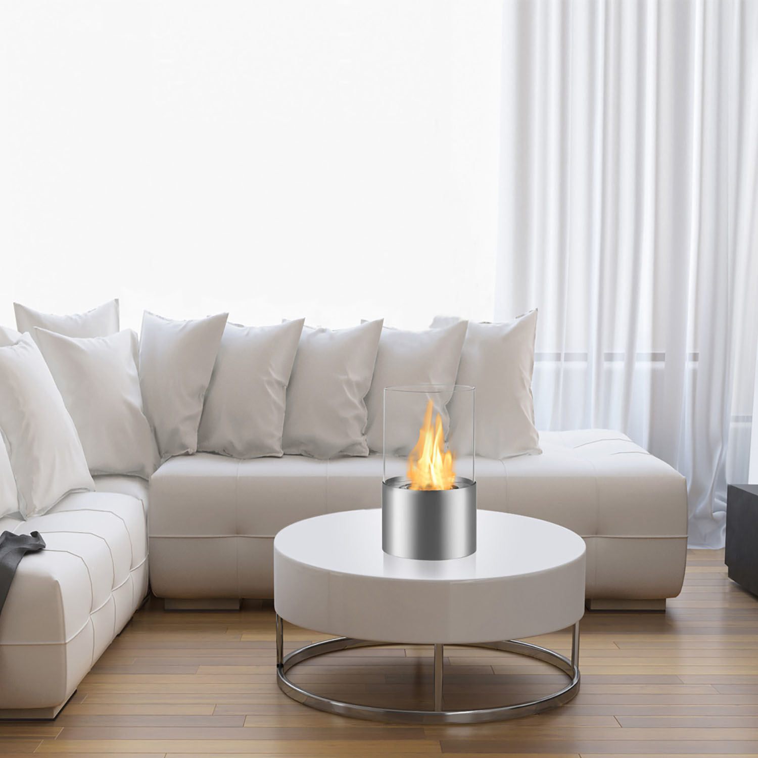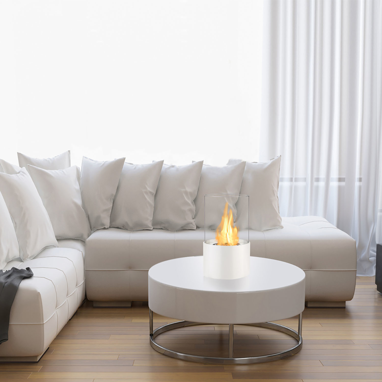 Add coziness and warmth to any room with the Circum Ventless Ethanol Fireplace. This tabletop unit is sized just right to give you the heat you need while entertaining friends, reading a good book, or just hanging out. The beauty of this ventless fireplace is that you don't need a chimney or gas or electric lines to make it work. Place this free standing fireplace anywhere in your home where you want to enhance the ambiance and add some aesthetic style.