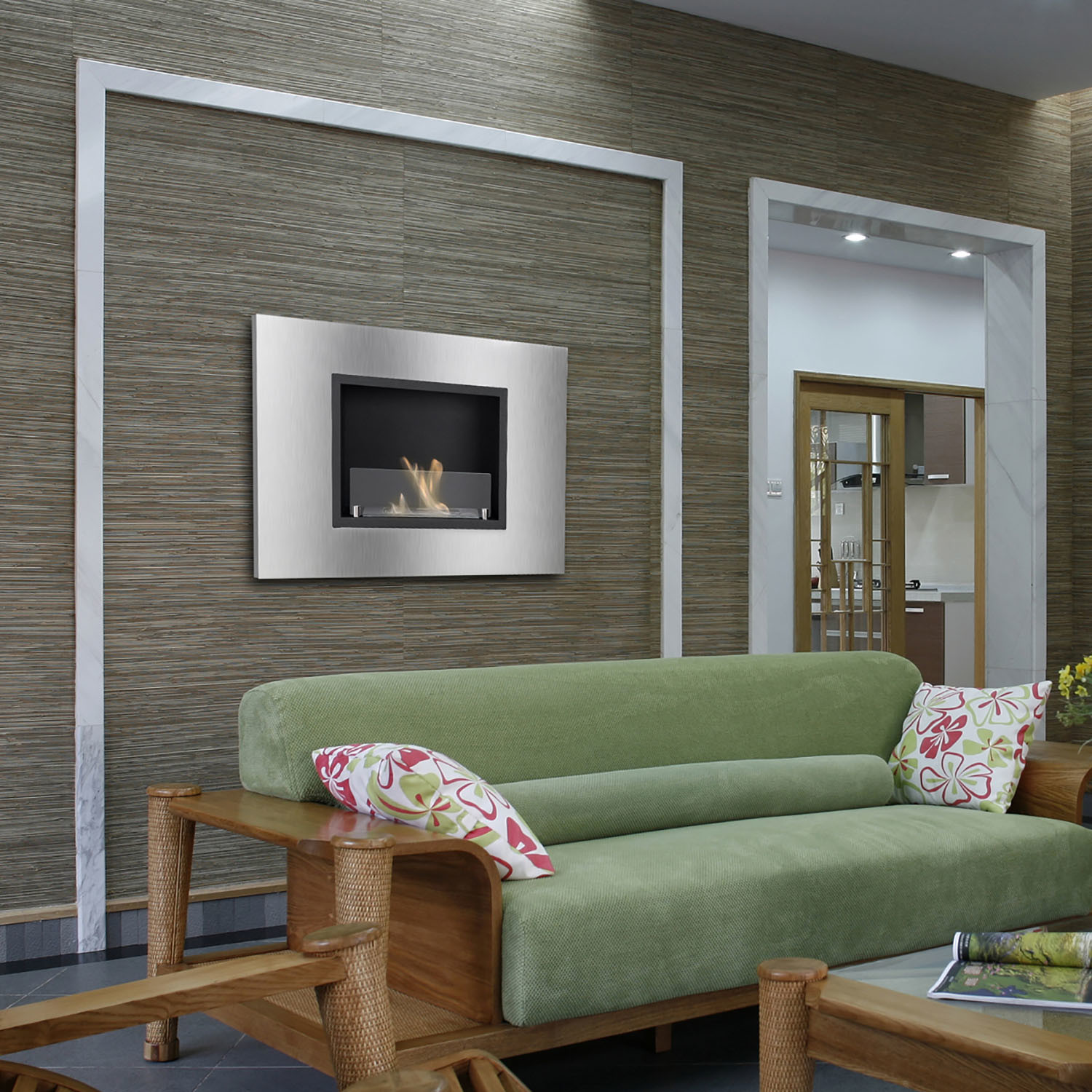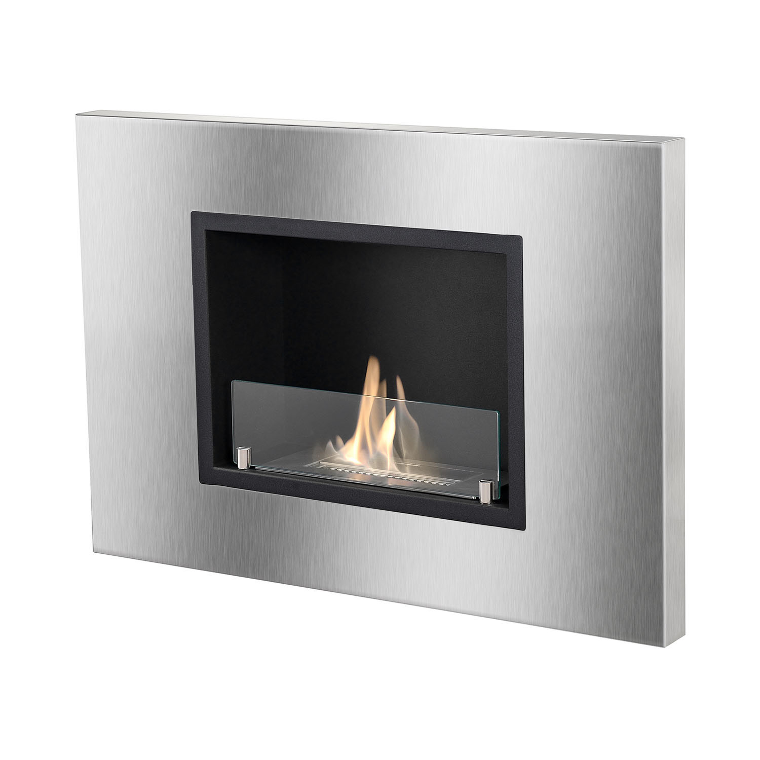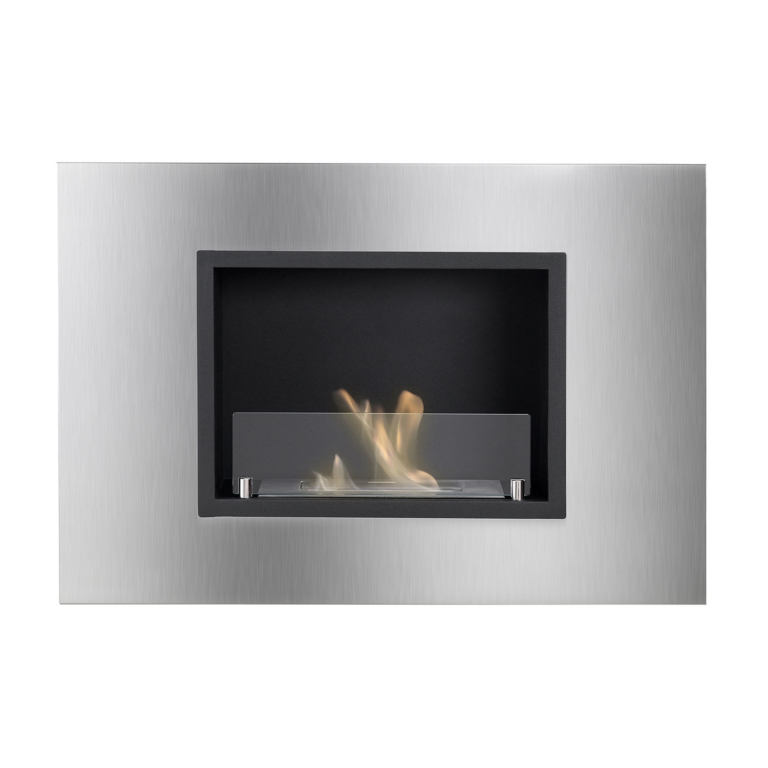 Make the most use of your space with the Quadra Recessed Ventless Ethanol Fireplace. This slim profile, ethanol fireplace can be easily hung on any wall, and features a stylish stainless steel frame with black powder-coated accents. It's equipped with a 1.5-liter burner that throws out 6,000 BTUs of efficient, clean-burning heat without the mess and the fuss of a wood-burning fireplace, while adding to the ambiance of your living space.