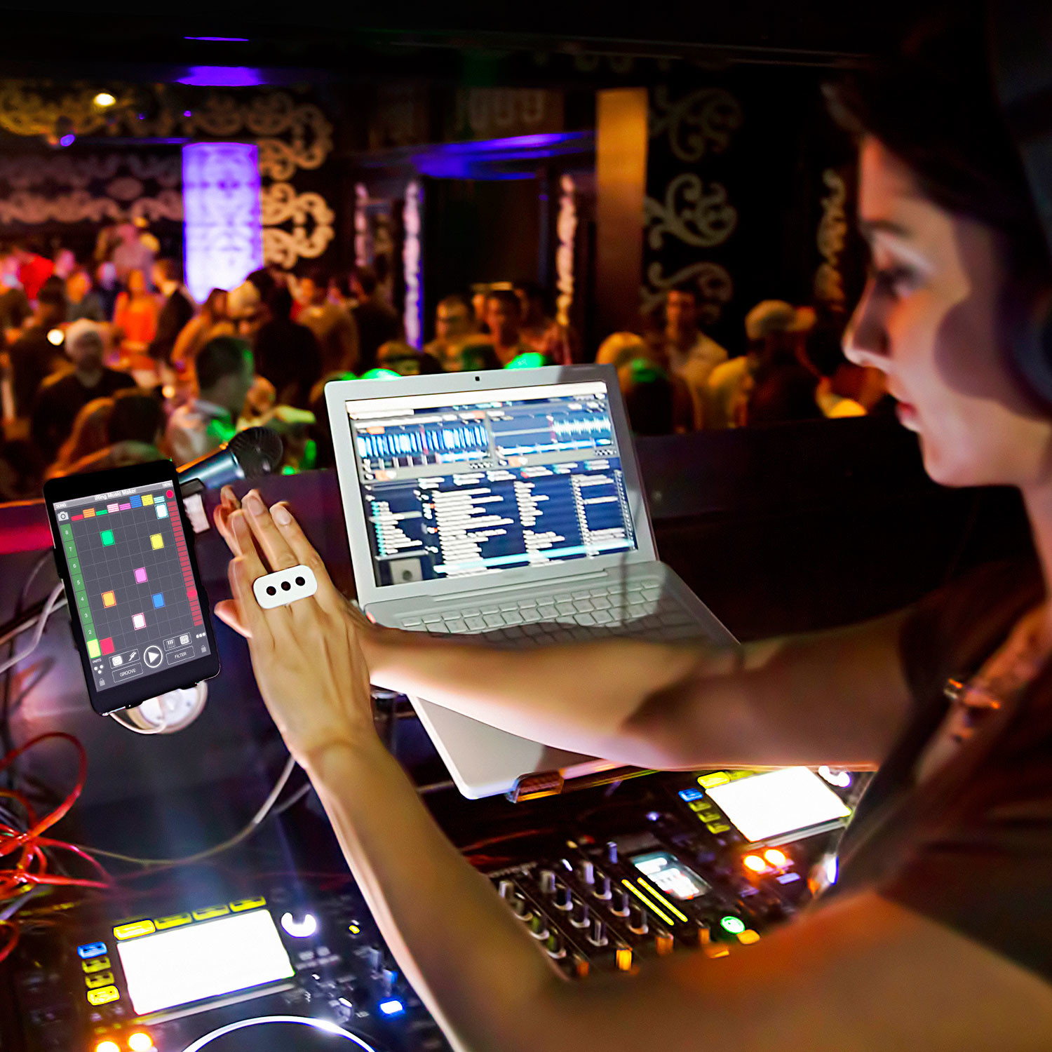 Making music and creating killer real time grooves and effects for nonstop dance music and grooves is now easy and as simple as moving your hands… something you probably already do. So get the groove going and take control with your hands and iRing.