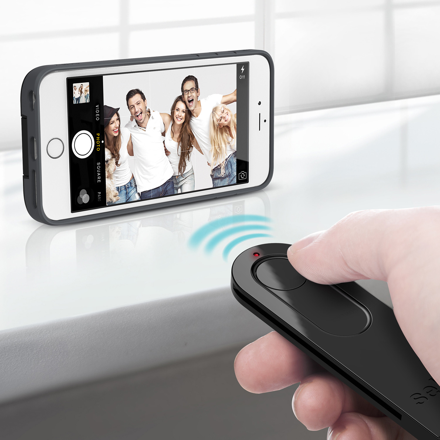 Introducing the Selfy Case With Built-In Bluetooth Camera Remote, a wireless remote camera shutter integrated with a dual-layer iPhone case. This unique design protects your phone and lets you capture your favorite moments like never before. Slide the shutter out from the case and enjoy taking photos and videos without struggling to reach your phone's camera button. When you're done, just slide the shutter back into the case. The integrated design means the shutter is always with you and ready to use no matter what the occasion. Get the best angle on your next self-portrait or set up a perfect group photo with yourself in it — Selfy gives you the freedom to make every moment picture-perfect.