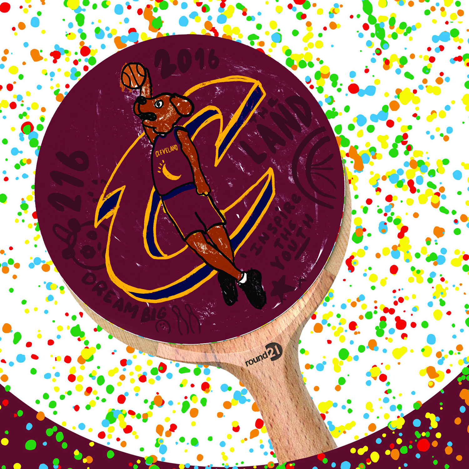 Vic Garcia reimagines the heritage and culture of Cleveland basketball and the people who make the city great. With Moon Dog central to the piece, this artfully designed ping pong paddle sculpture is designed for play or display. The perfect gift for the die-hard Cleveland Cavaliers fan.