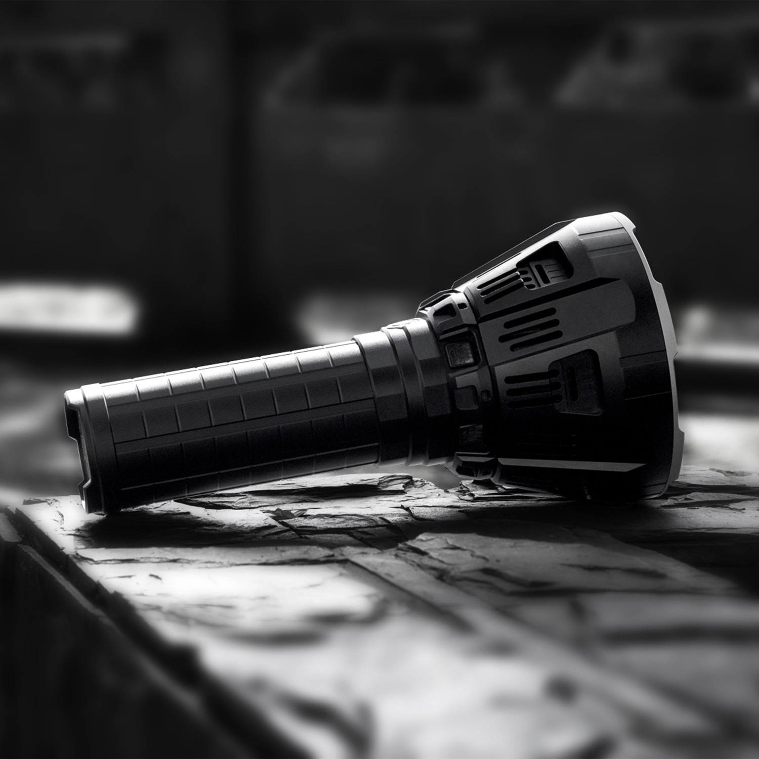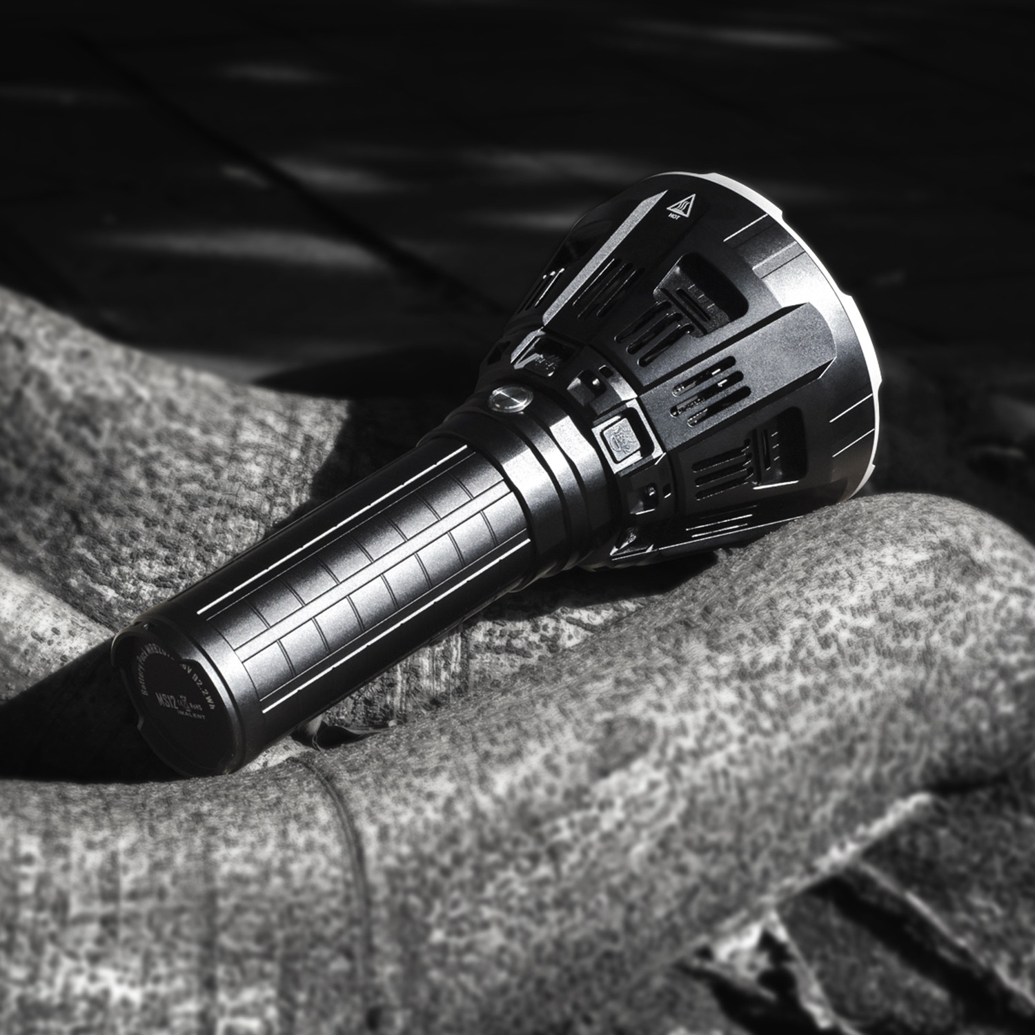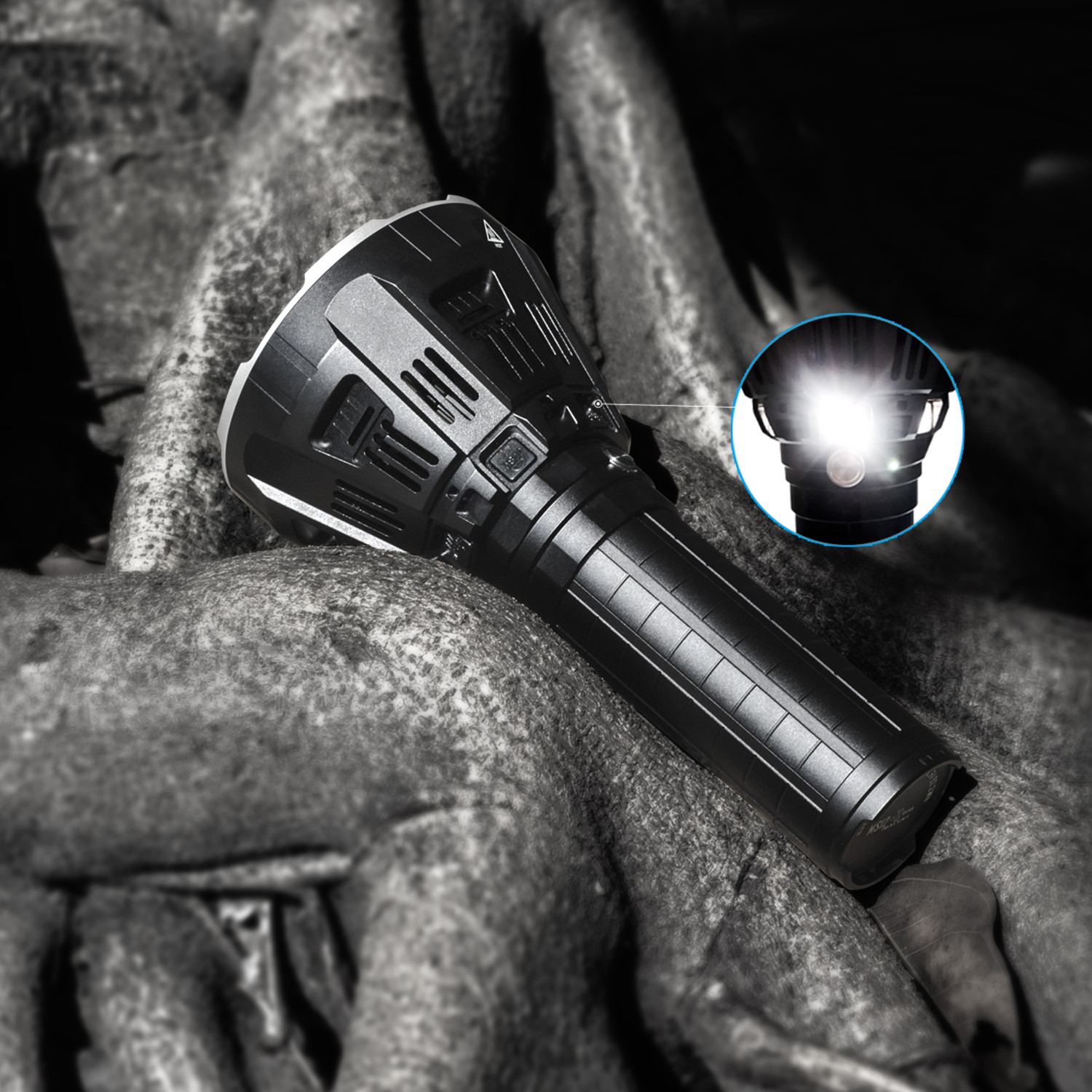 The MS12 used 12 CREE XHP70 LEDs with a maximum output up to 53000LM and long throw up to 913 meters. It's extremely compact and comfortable to hold, and utilizes 6 side lights for camping, fishing and more other outdoor lighting experience!