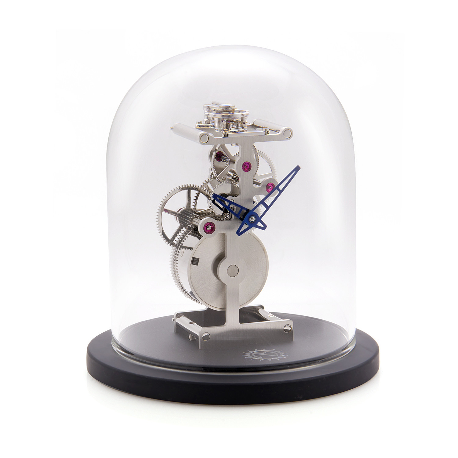 — Case Material: Base metal with Palladium finish, Mineral domed protective glass, Lacquered wooden base
