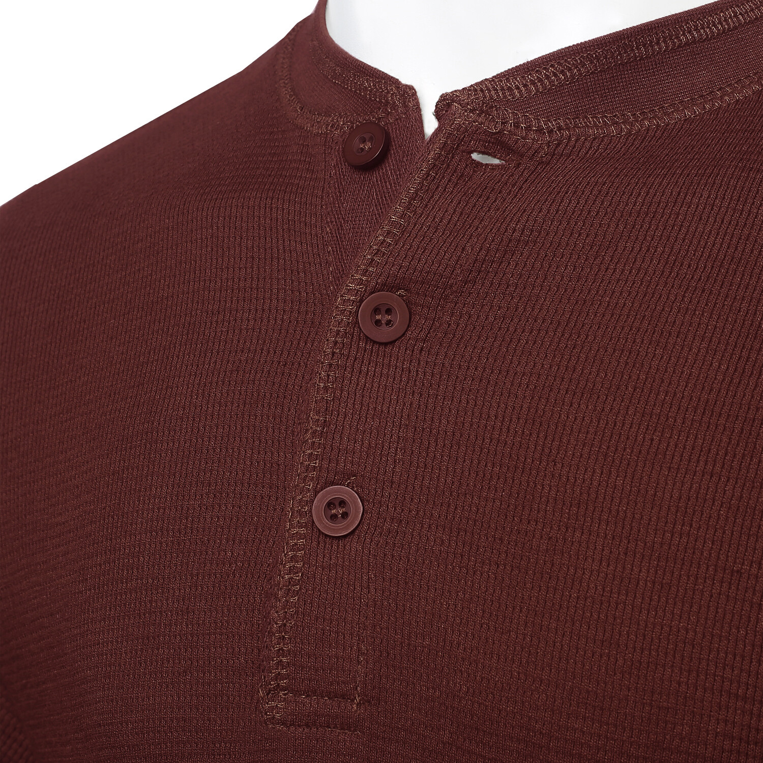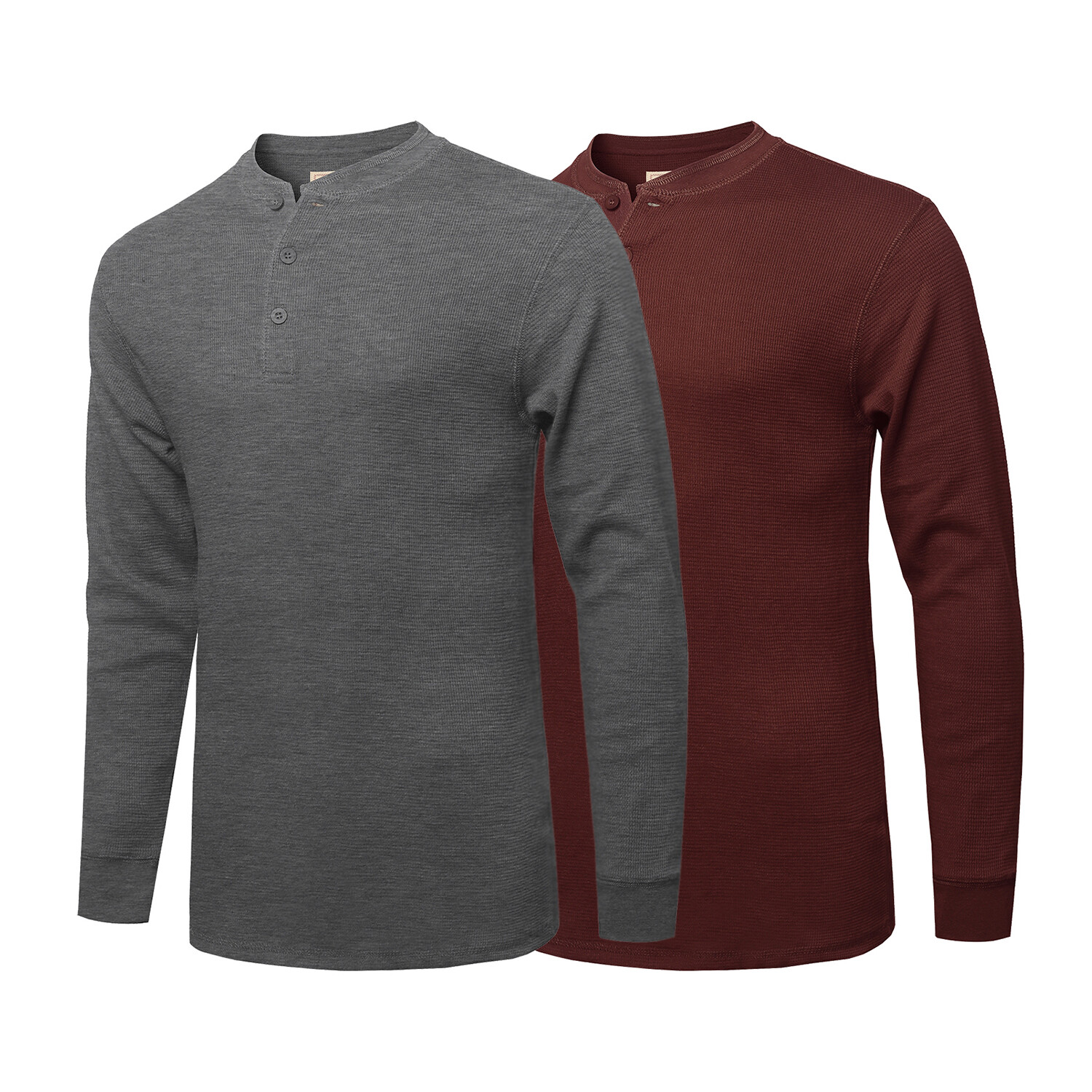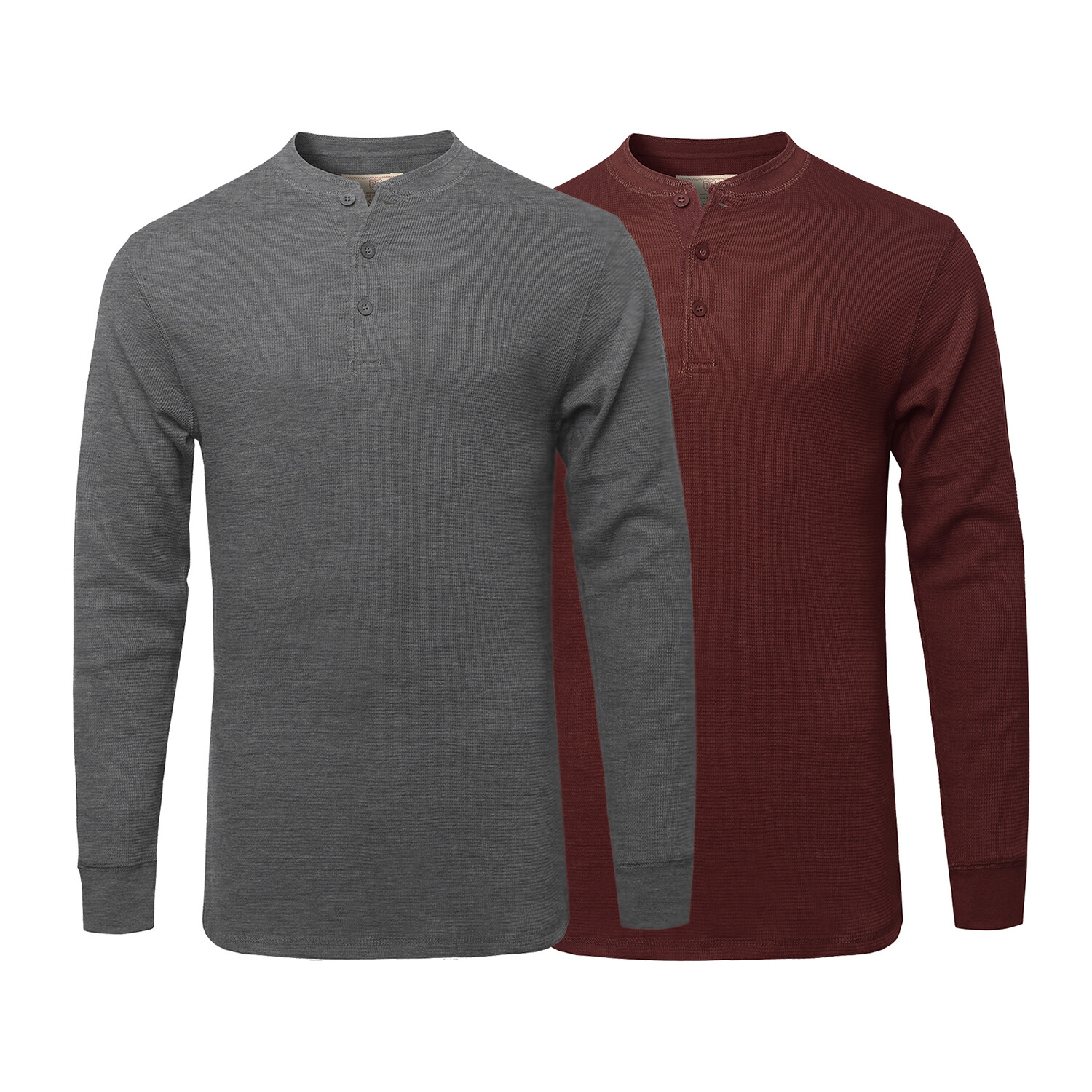 Mens Thermal Henley Long Sleeves Shirts // Charcoal + Burgundy