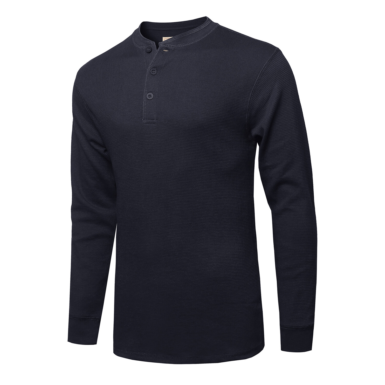 Mens Thermal Henley Long Sleeves Shirts // Navy