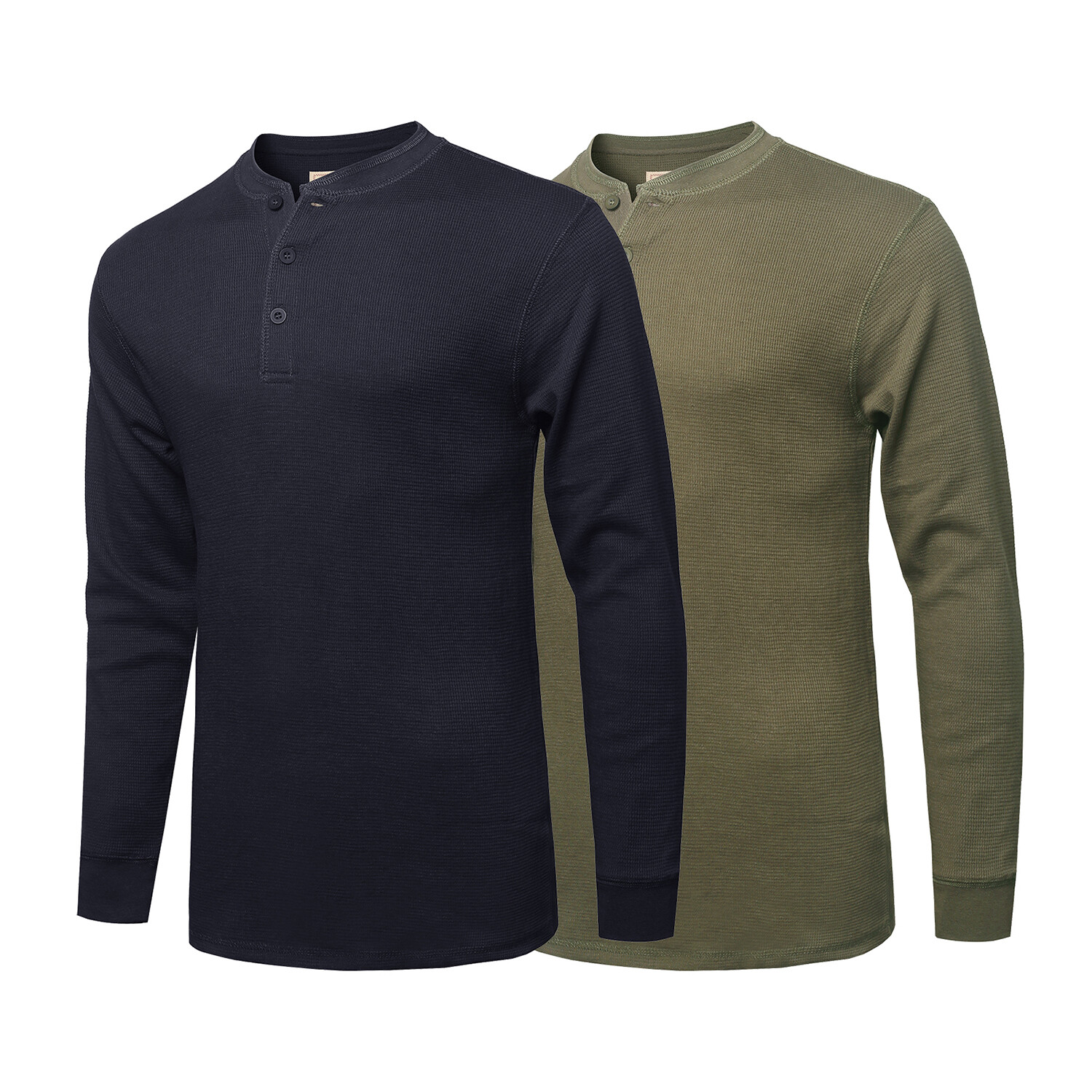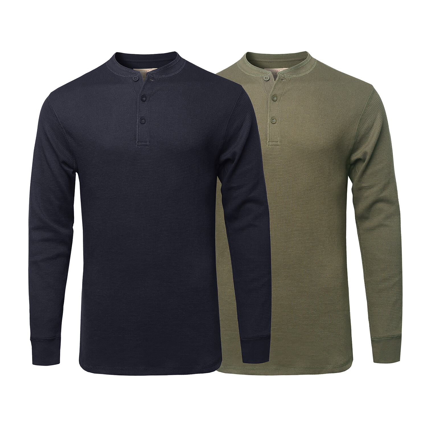 Mens Thermal Henley Long Sleeves Shirts // Navy + Olive