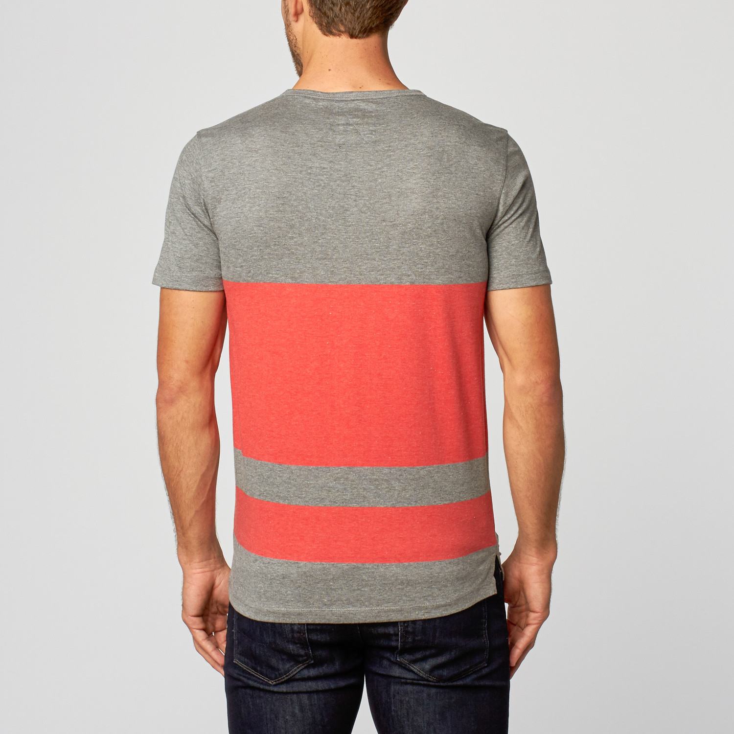 A basic with a worn-in feel, the Brentwood Stripe Henley makes the most of cutting-edge dyeing, washing and finishing techniques. This piece is made with a bold, color blocked stripe and henley neckline.