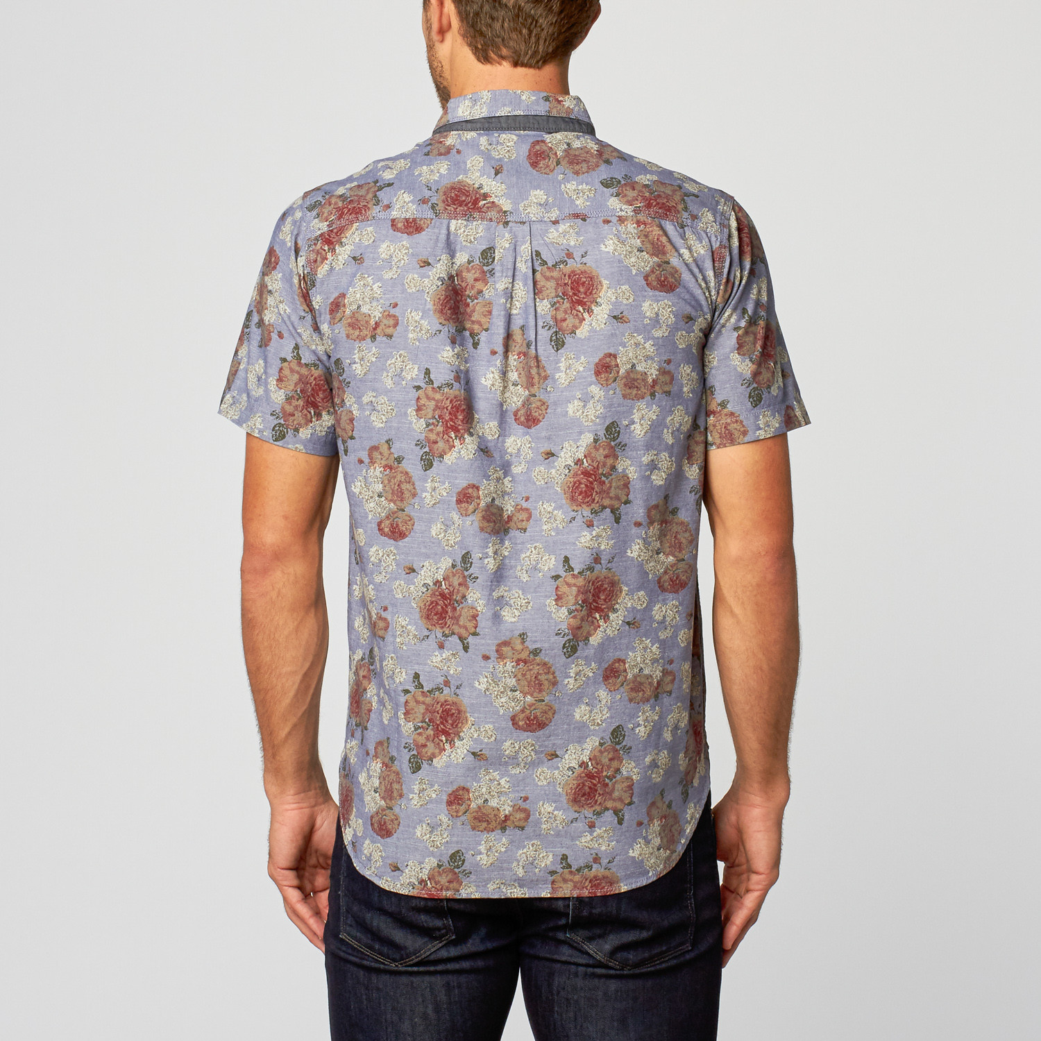 A basic with a worn-in feel, the Strut Floral Print Shirt makes the most of cutting-edge dyeing, washing and finishing techniques. This piece is custom yarn-dyed.