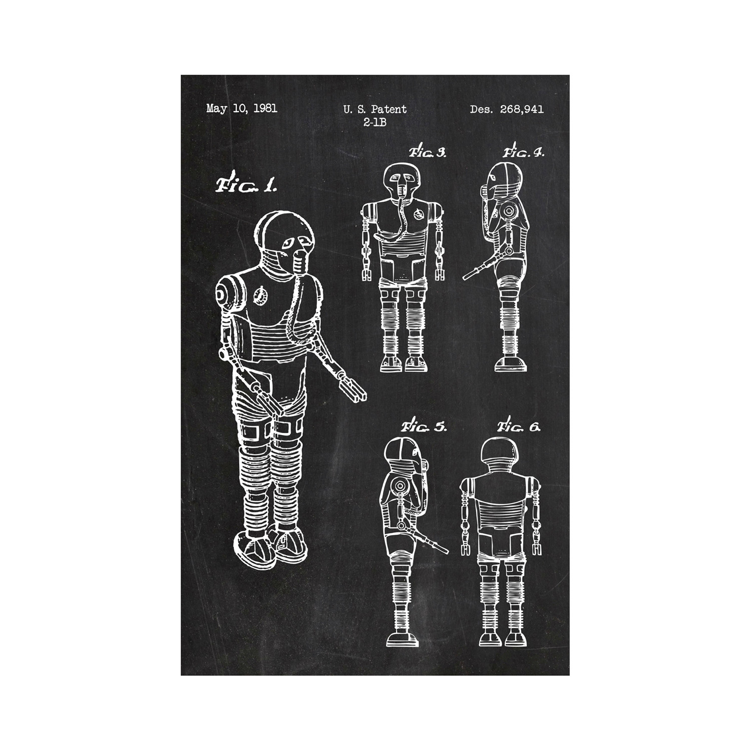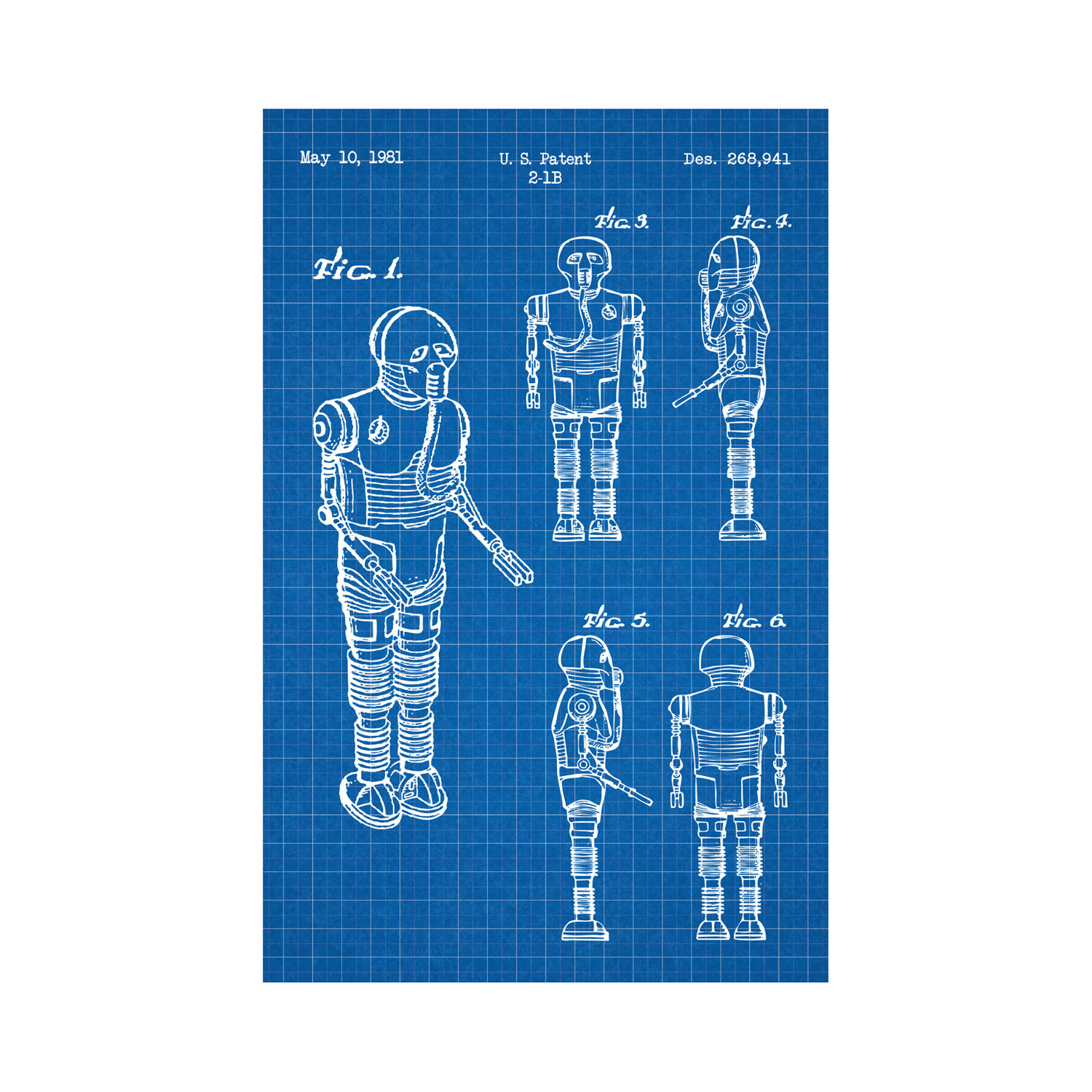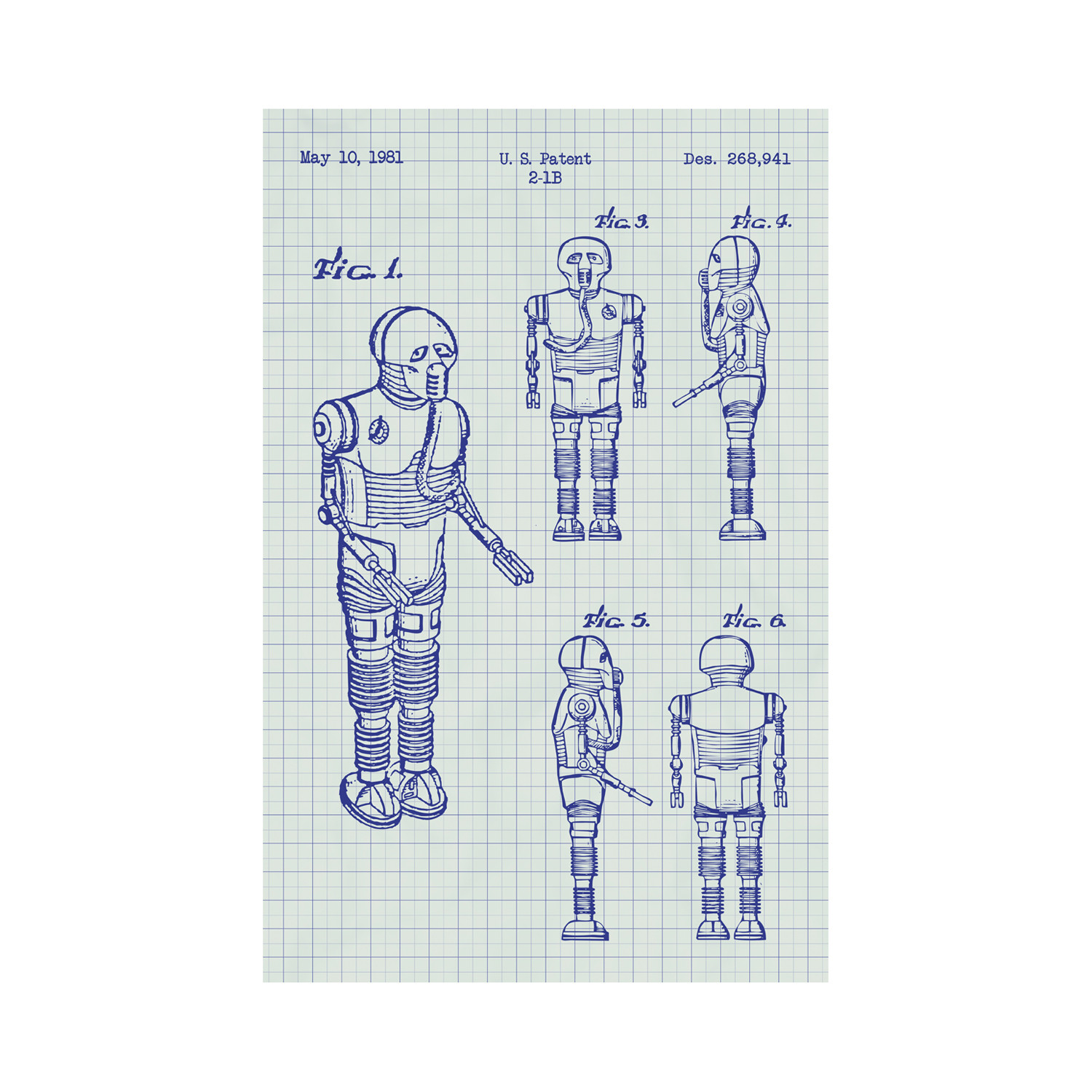 Rendered with acrylic ink on top of thick, high quality 100 lb. paper, this Star Wars patent print of a 2-1B has stemmed from the inspiration of the original creators! Screen printed artwork can be identified by its thick raised ink, which seems to catch the eye from every angle. By hand printing every order, Inked and Screened’s team of artists create the prominent depth of field and texture that is found on each poster