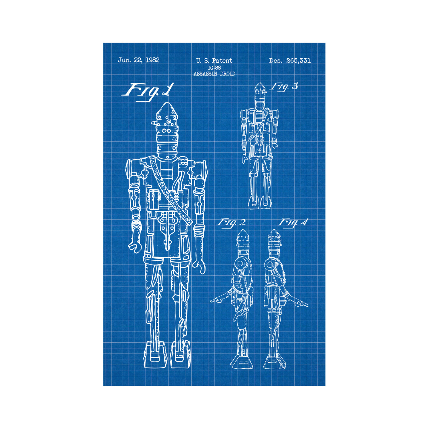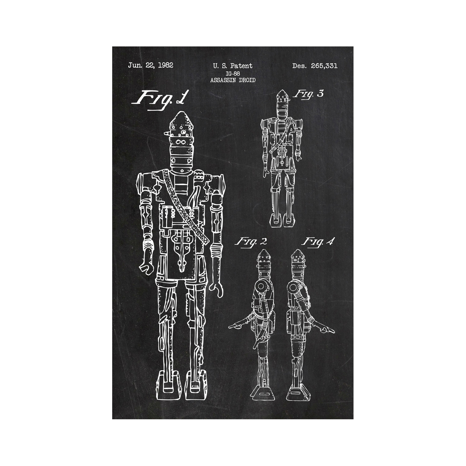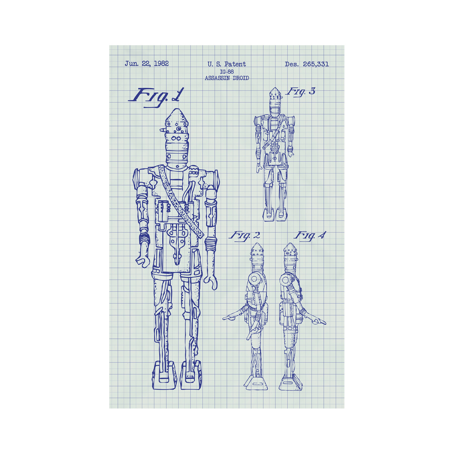 Rendered with acrylic ink on top of thick, high quality 100 lb. paper, this Star Wars patent print of an IG88 Droid has stemmed from the inspiration of the original creators! Screen printed artwork can be identified by its thick raised ink, which seems to catch the eye from every angle. By hand printing every order, Inked and Screened’s team of artists create the prominent depth of field and texture that is found on each poster